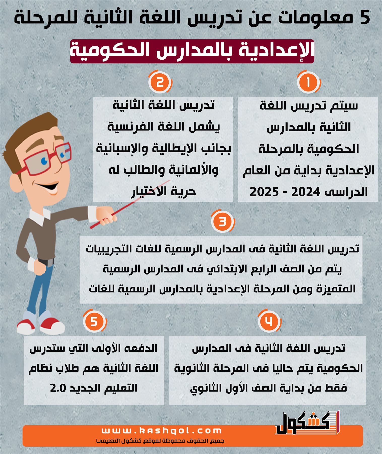 انفوجراف.. 5 معلومات عن تدريس اللغة الثانية للمرحلة الإعدادية في المدارس الحكومية