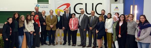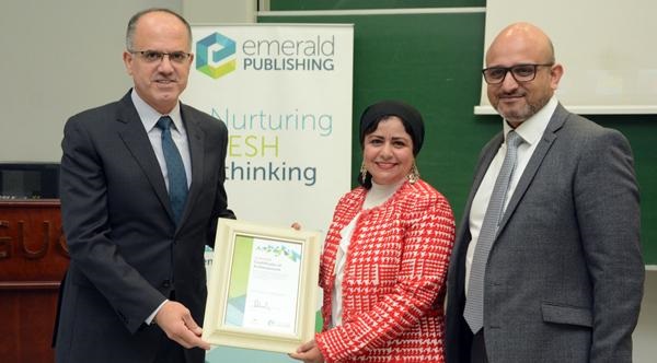كرم الدكتور ياسر جمال حجازي رئيس الجامعة الألمانية بالقاهرة و شارق ممتاز العضو المنتدب للمبيعات العالمية في شركة إميرالد للنشر، وبحضورعدد من ممثلى الشركة بالإشتراك مع بنك المعرفة المصرىEgyptian Knowledge Bank الباحثة نهى البسيونى أستاذ ورئيس قسم التسويق بكلية تكنولوجيا الإدارة بالجامعة لحصولها على خمس جوائز عالمية عن أبحاثها المنشورة مع الشركة المذكورة.