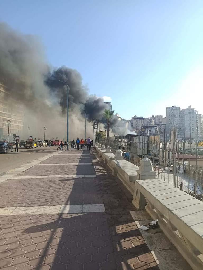 عاجل| حريق هائل بطريق كورنيش الإسكندرية