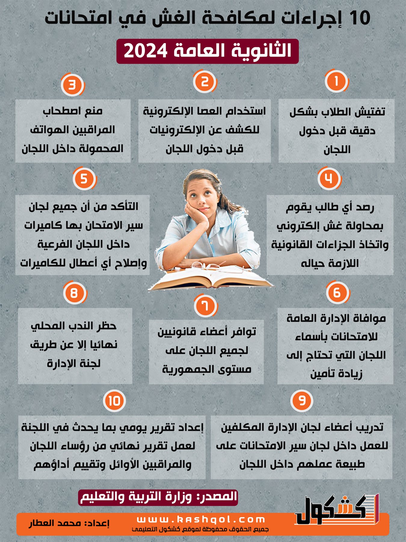 إنفوجراف| 10 إجراءات لمكافحة الغش في امتحانات الثانوية العامة 2024