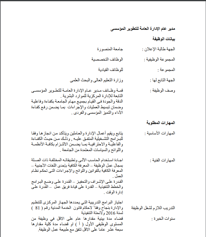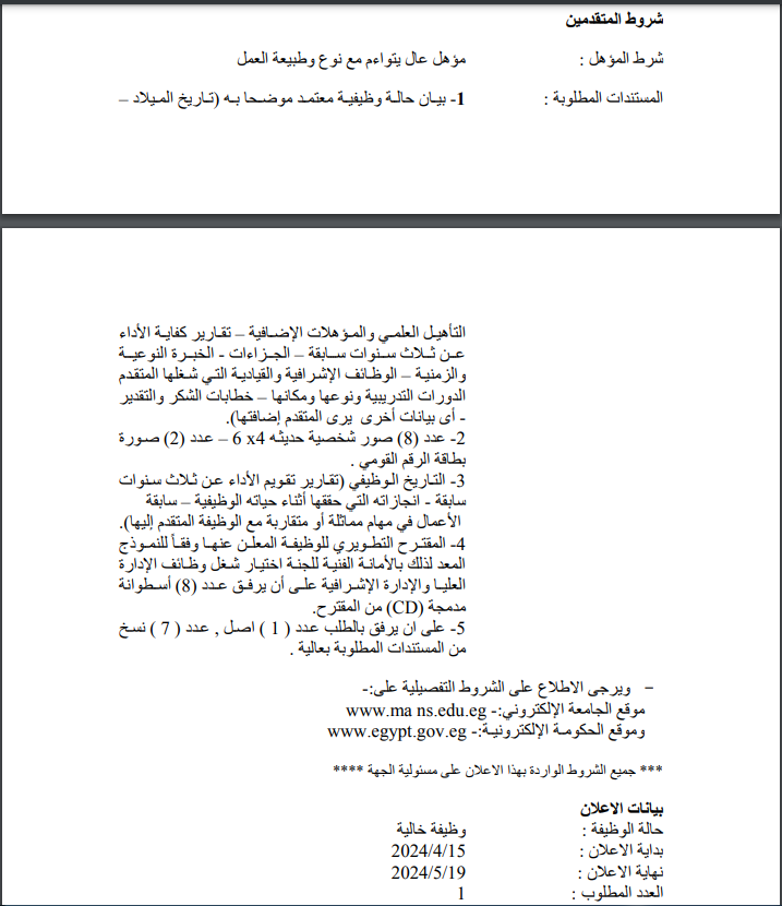 المستندات المطلوبة لوظائف جامعة المنصورة