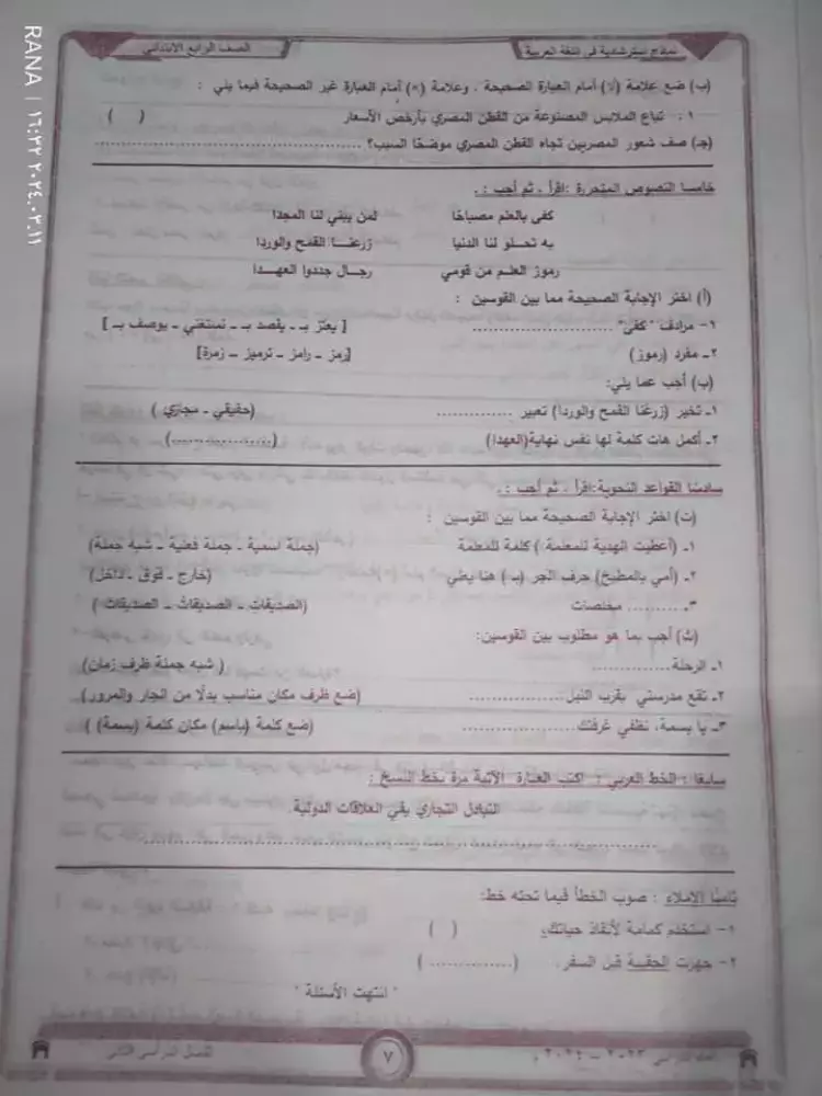 "حمل الآن".. نماذج امتحانات لغة عربية للصف الرابع الابتدائي الترم الثاني 2024