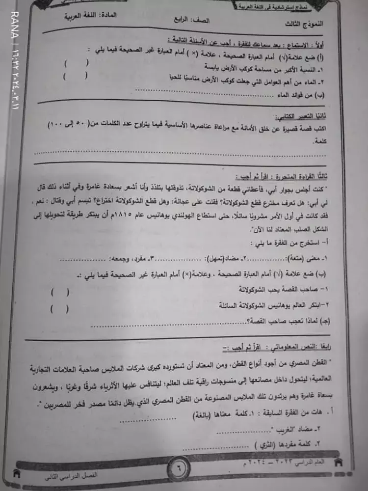 ننشر لكم خلال الصور التالية عدد من الامتحانات المتوقعة للصف الرابع الابتدائي الترم الثاني: