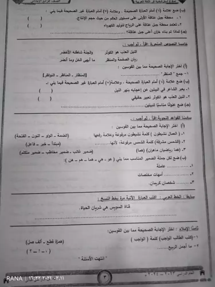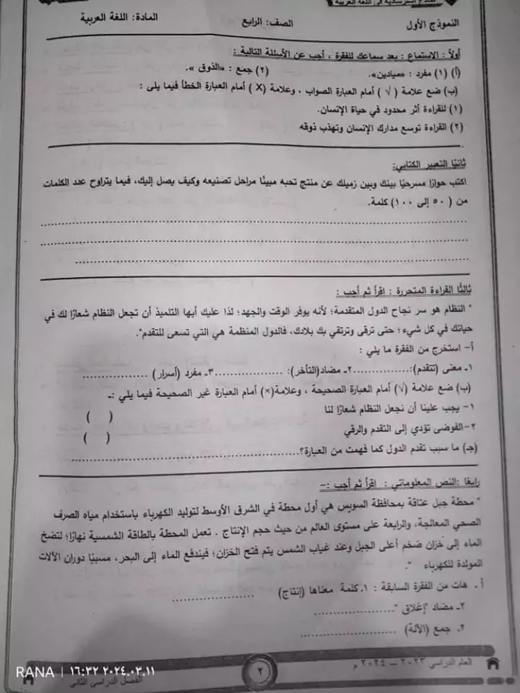 وهناك العديد من النماذج الاسترشادية لامتحانات عربي لطلاب رابعة ابتدائي سواء الملتحقين بالمدارس العام أو الأزهرية، ومن بين الأسئلة الموضوعة: