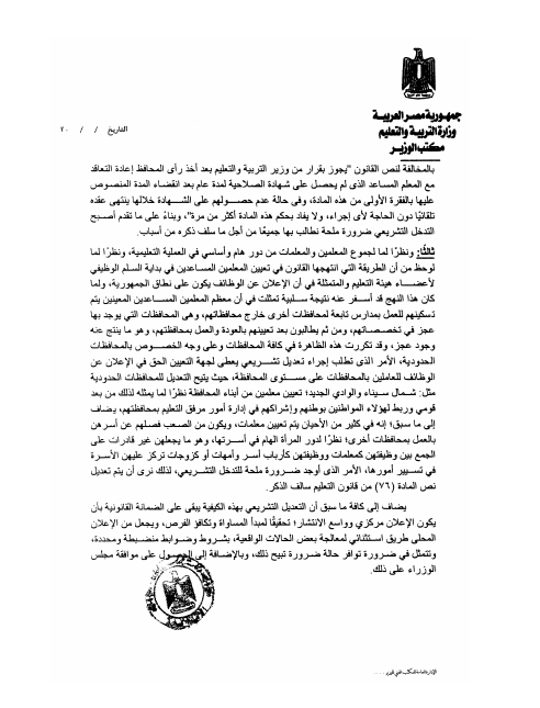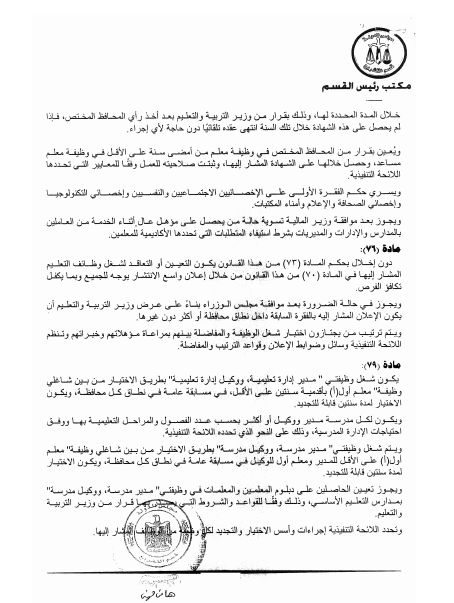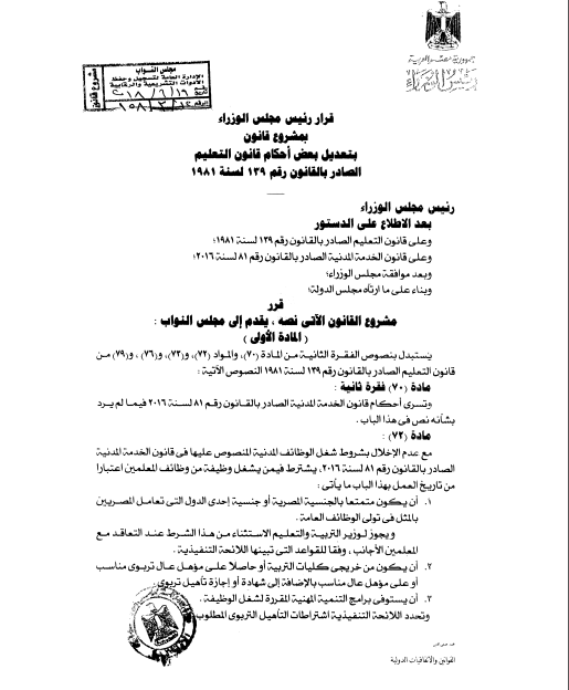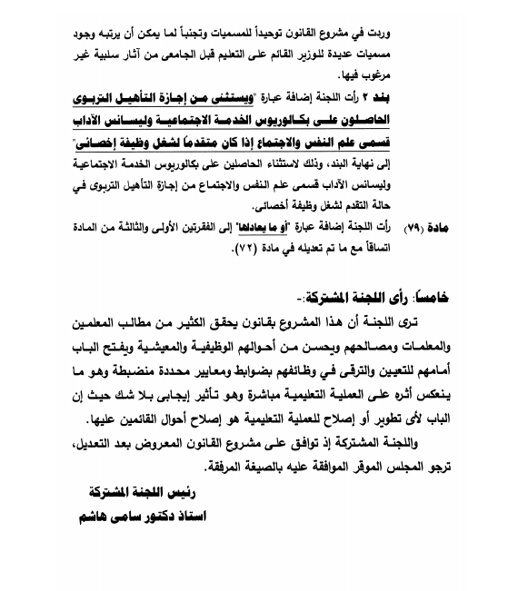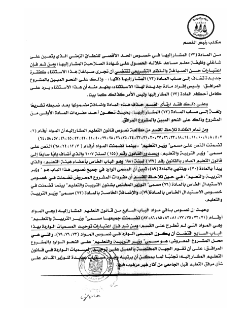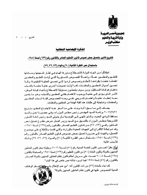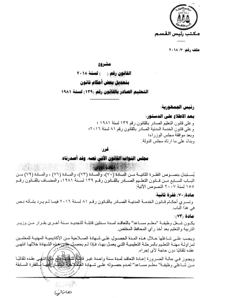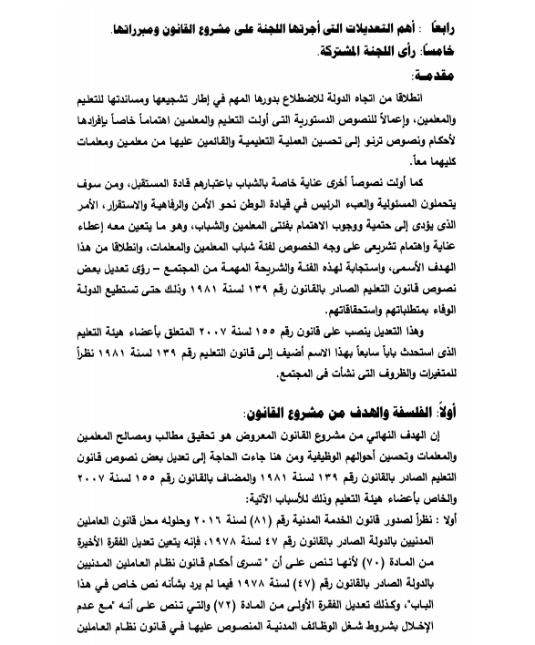 أعلن الدكتور سامى هاشم رئيس اللجنة المشتركة من لجنة التعليم والبحث العلمى ومكتب لجنة الإدارة المحلية عن تعديلات احكام قانون التعليم الصادر بالقانون رقم 139 لسنه 1981.