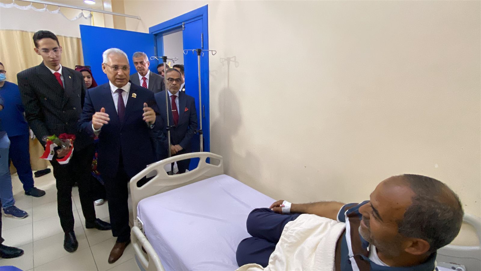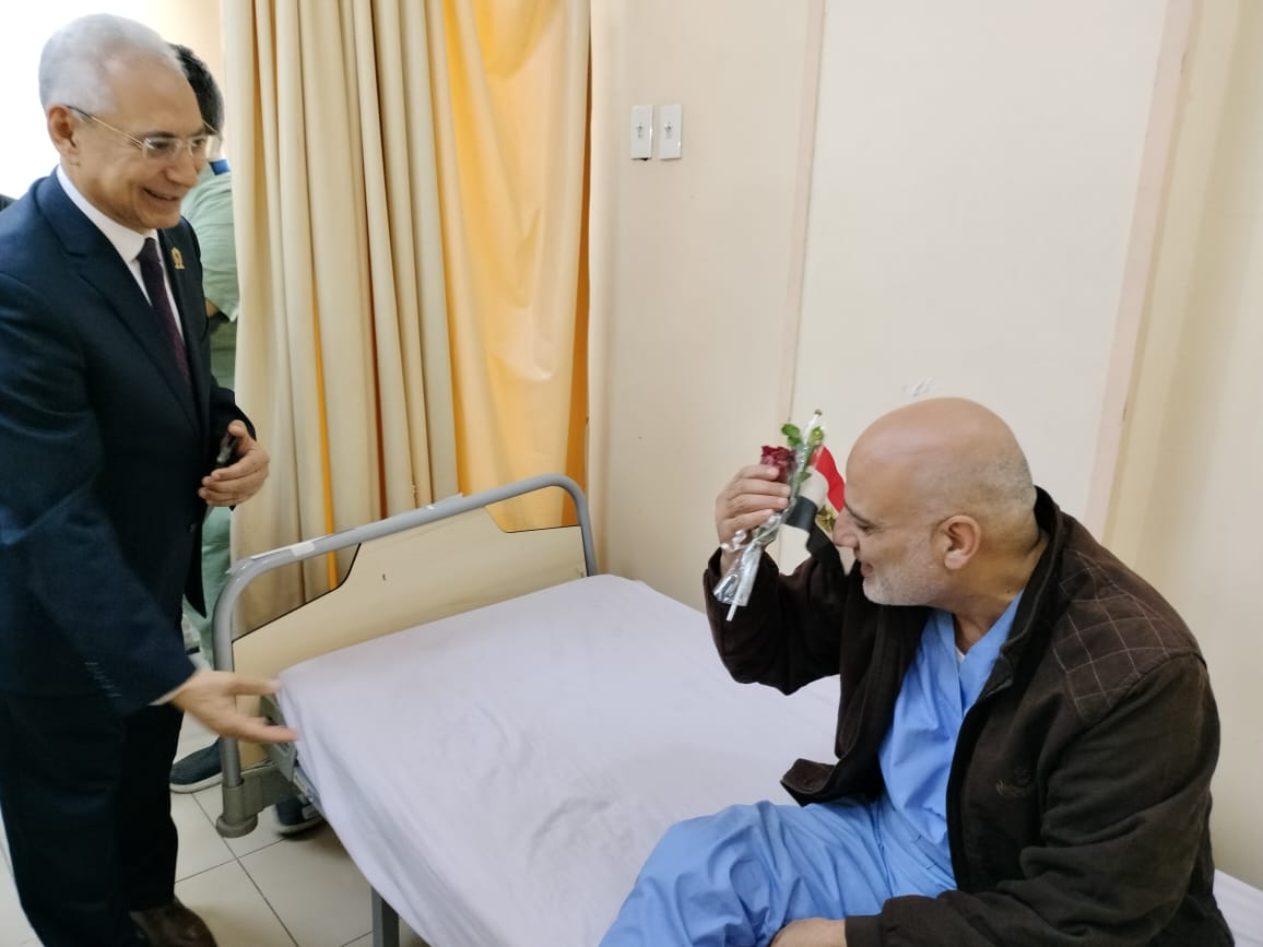 رئيس جامعة المنيا يزور المصابين ويوجه بتوفير كامل الرعاية للمصابين والمرافقين
