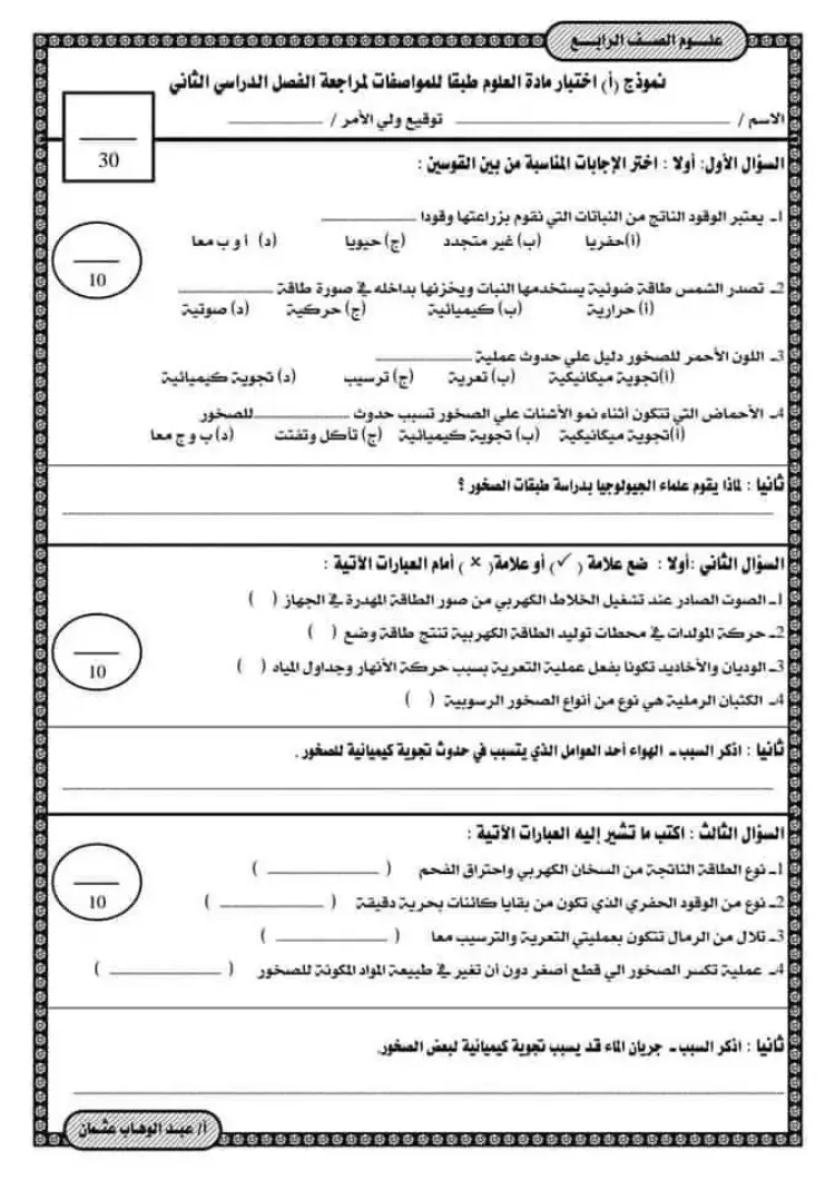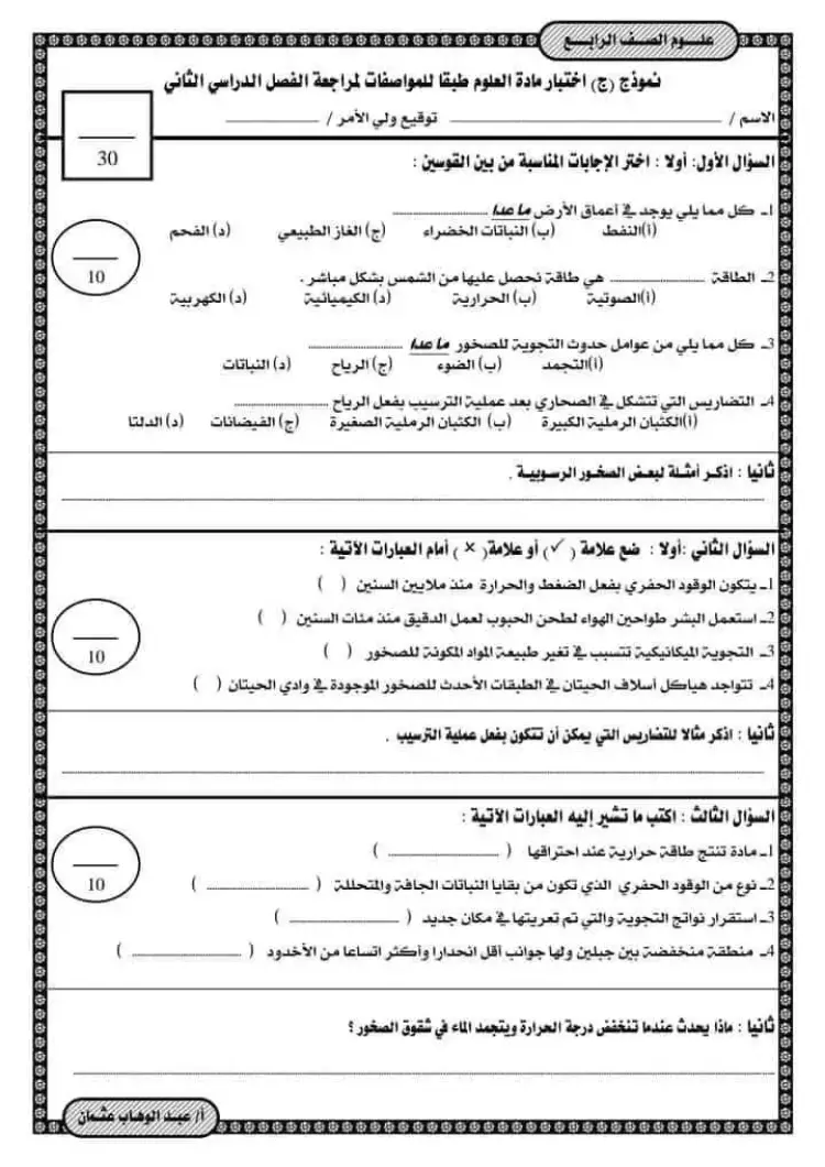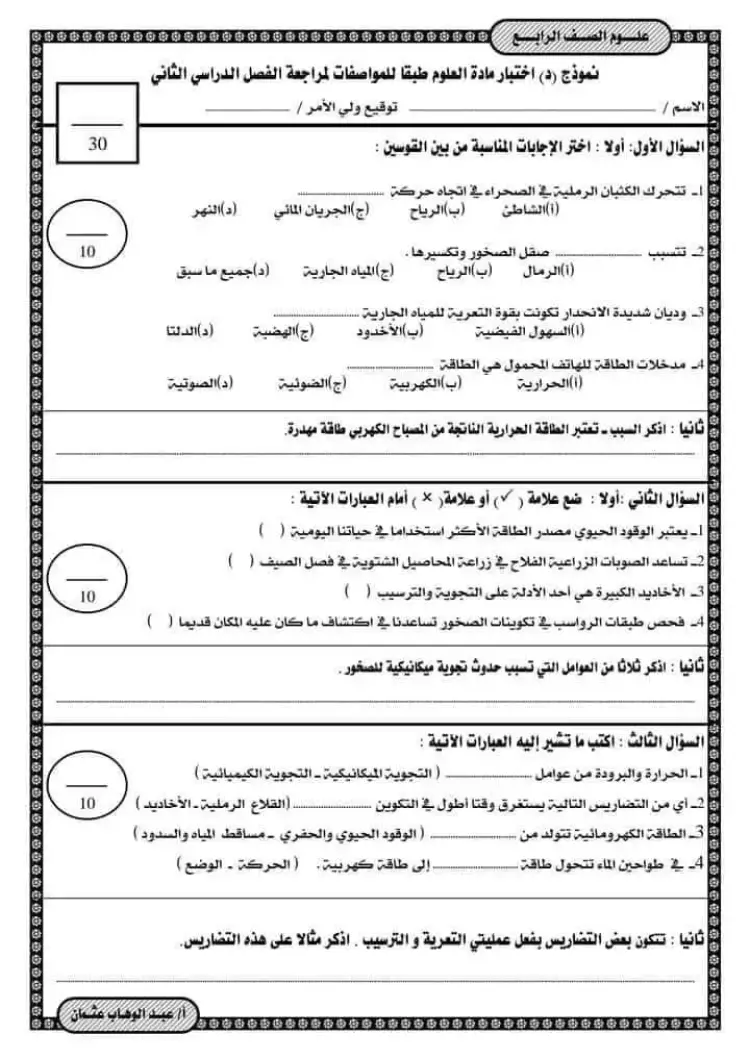 يمكنك الإطلاع على نماذج امتحانات علوم الصف الرابع الابتدائي الترم الثاني من خلال الصور التالية: