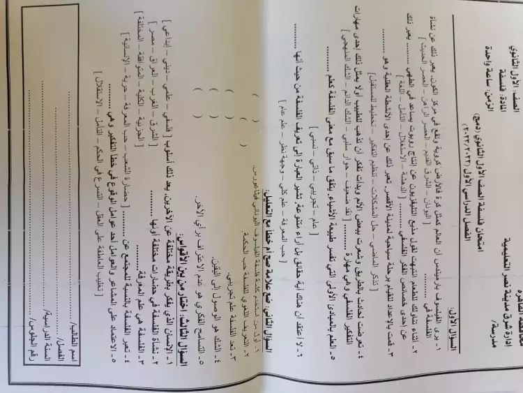 تكون أسئلة الورقة الامتحانية في حدود المقرر الدراسي المستهدف.