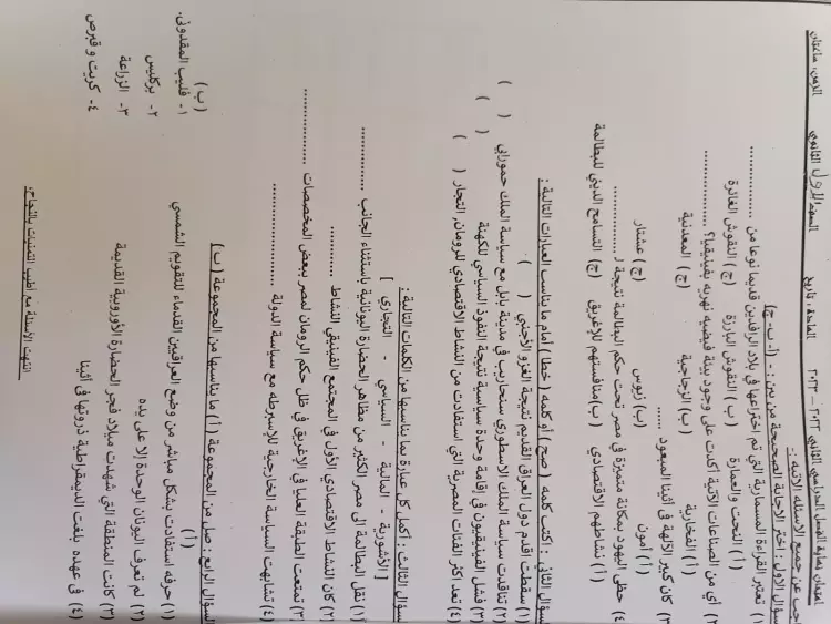 نماذج امتحانات دمج أول ثانوي 2024 الترم الثاني