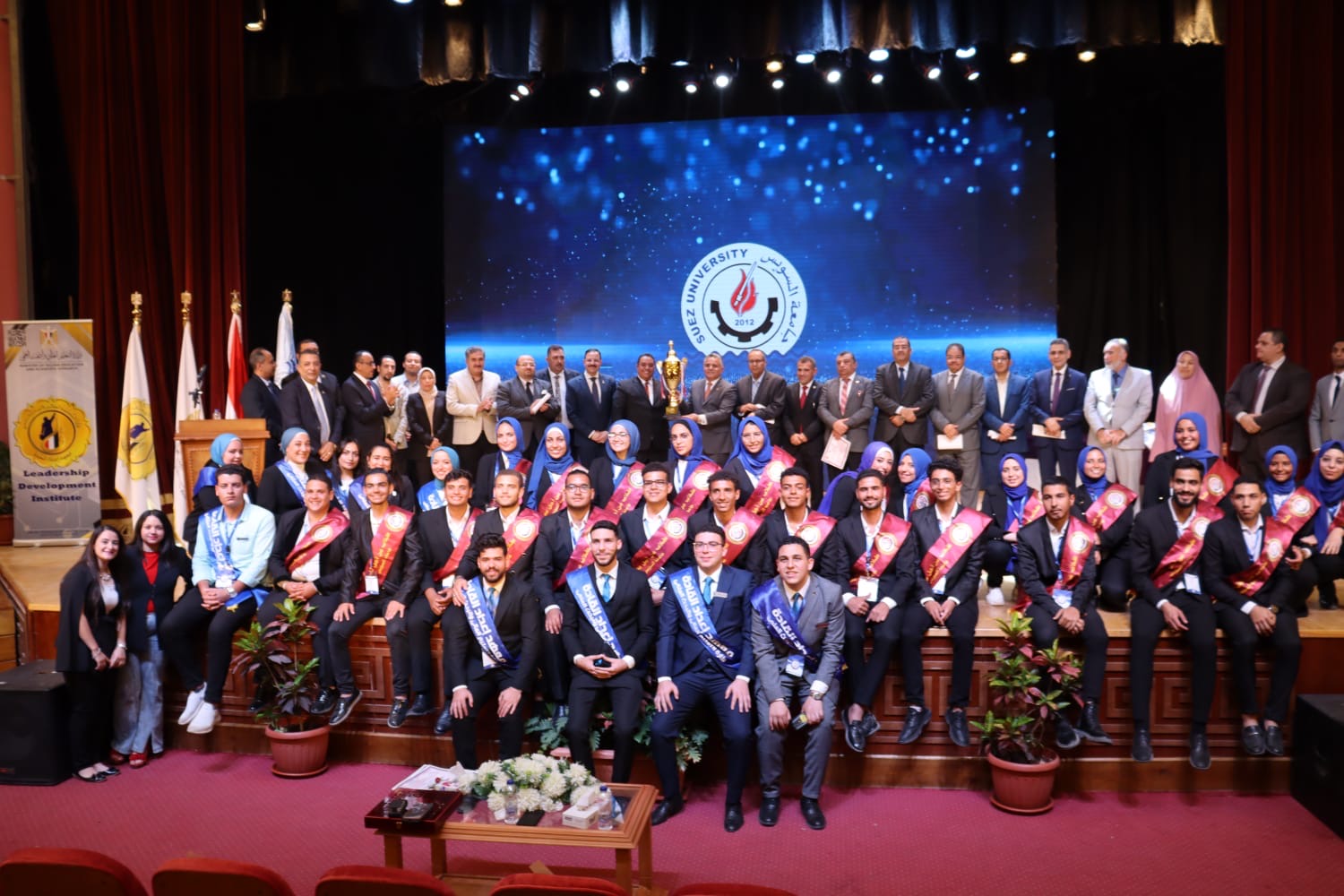جاء ذلك خلال حفل ختام مهرجان الأنشطة الطلابية لطلاب الجامعات المصرية الذي عُقد تحت رعاية الدكتور أيمن عاشور وزير التعليم العالي والبحث العلمي، اللواء أركان حرب عبد المجيد صقر محافظ السويس، والدكتور أشرف محمد حنيجل رئيس جامعة السويس، والدكتور كريم همام مستشار وزير التعليم العالي للأنشطة الطلابية ومدير معهد إعداد القادة، وإشراف الدكتور عز الدين الحسيني نائب رئيس الجامعة لشؤون التعليم والطلاب، والدكتور حسام الشريف وكيل معهد إعداد القادة، والأستاذة جيهان وحيد مدير عام الإدارة العامة لرعاية الطلاب بالجامعة.