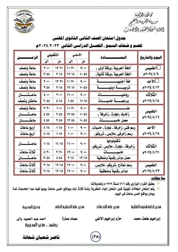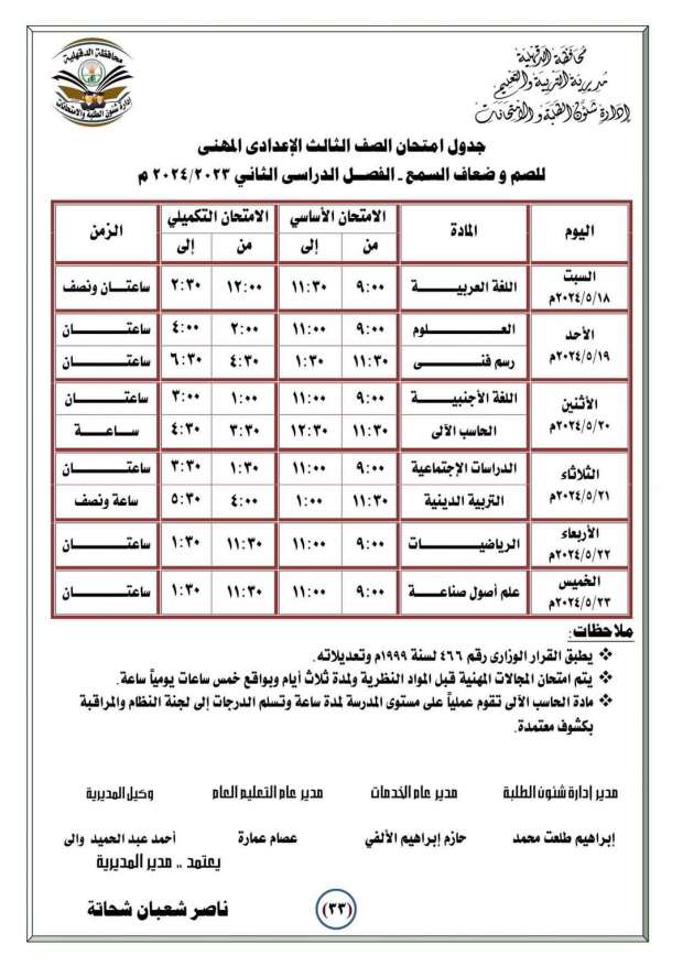 وأشار وكيل وزارة التربية والتعليم بالدقهلية إلى أن جدول امتحانات الصم والبكم بالدقهلية للترم الثاني، كالآتي: