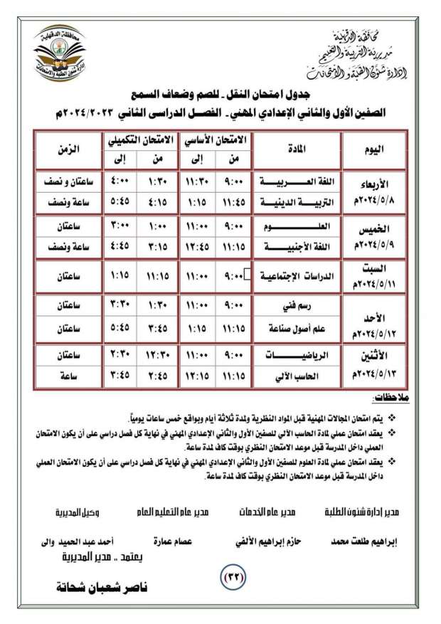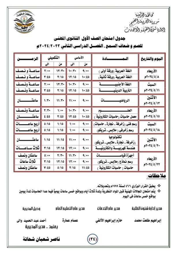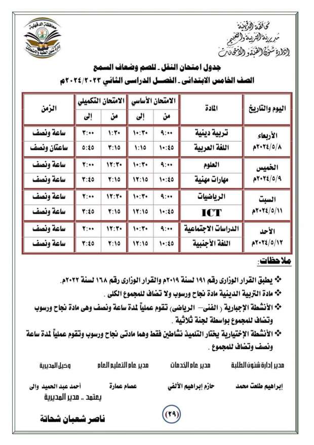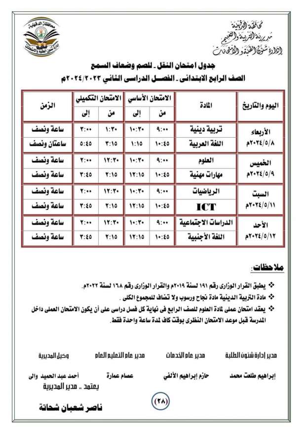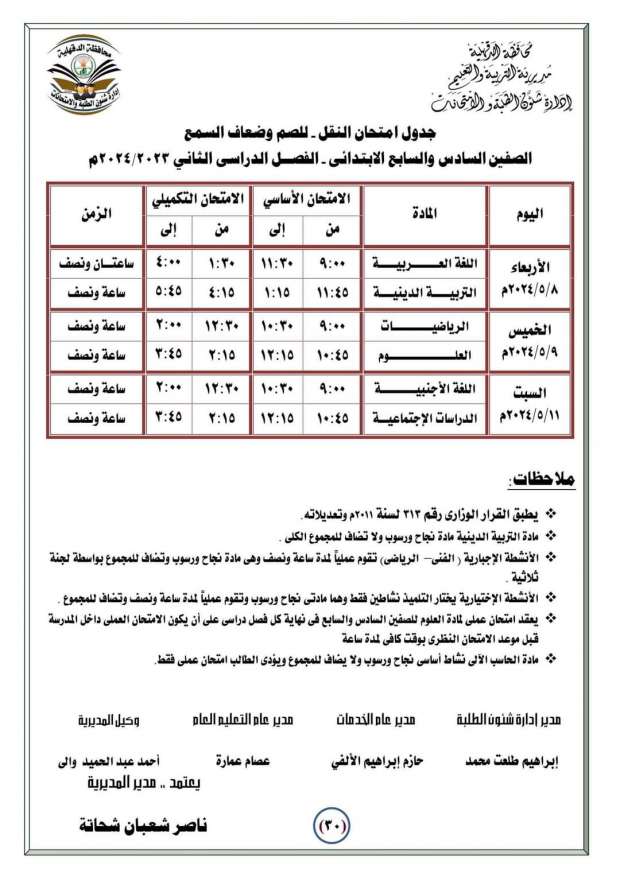 ننشر مواعيد امتحانات الترم الثاني لصفوف النقل في مدارس الصم والبكم بالدقهلية