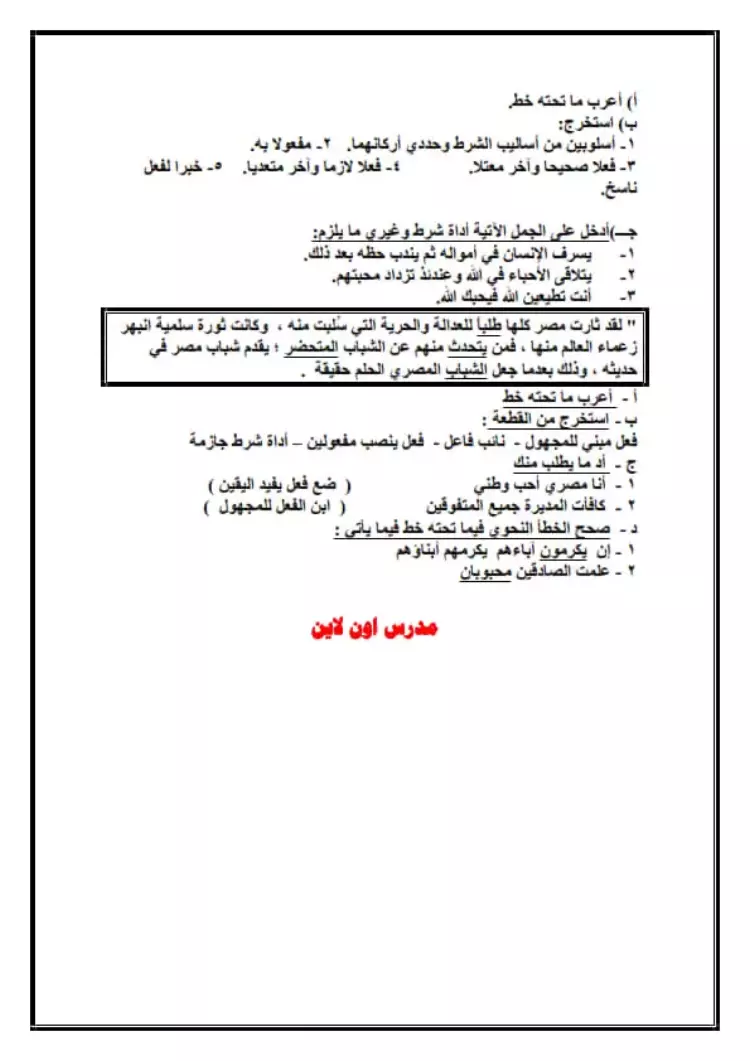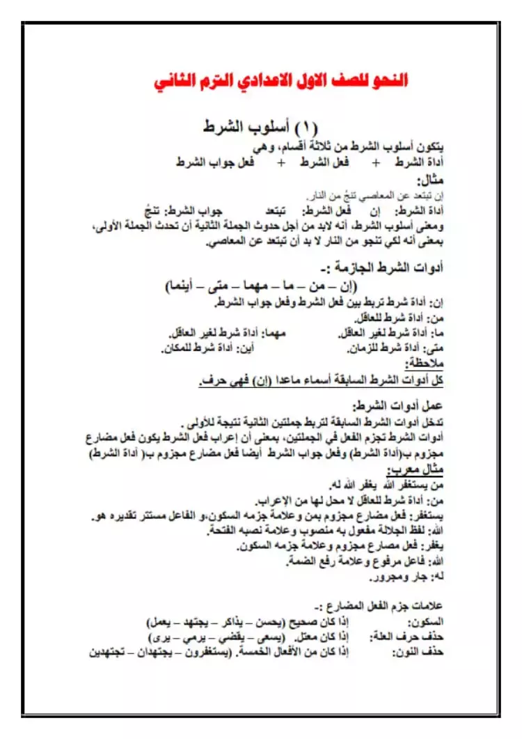 يمكنك الحصول على نسخة من ملخص النحو للصف الأول الإعدادي الترم الثاني من خلال الصور التالية: