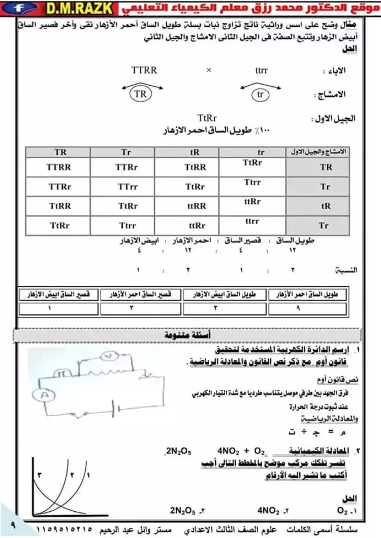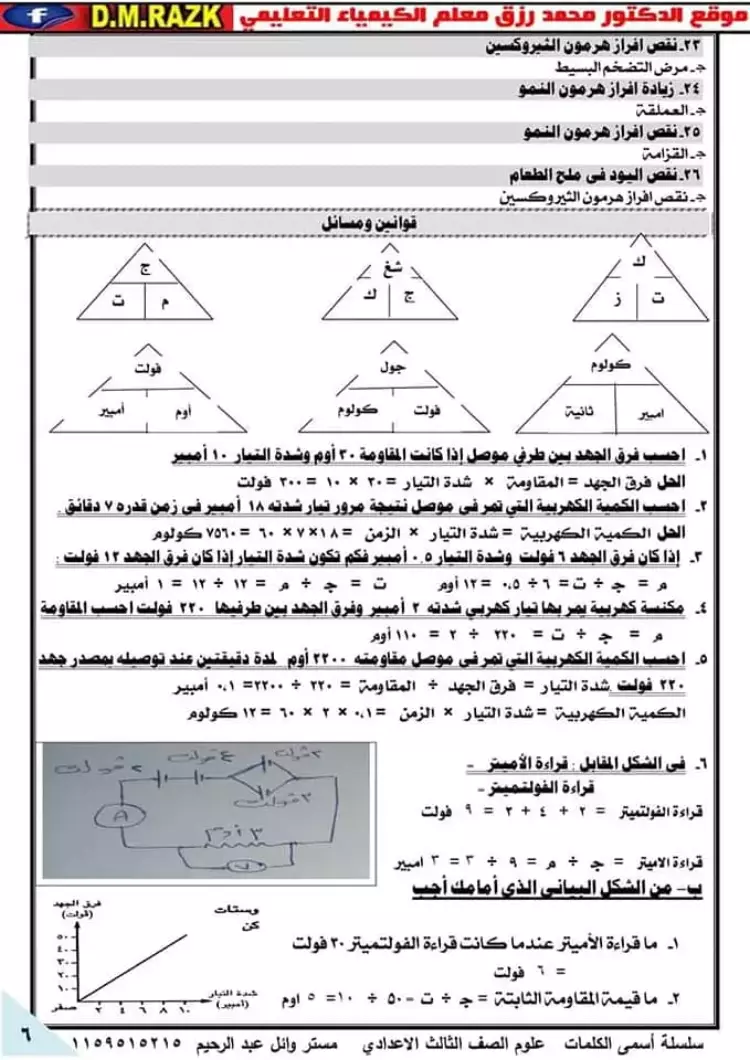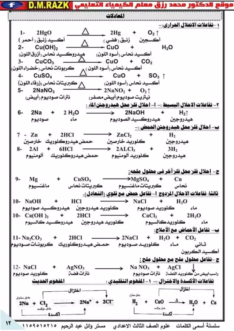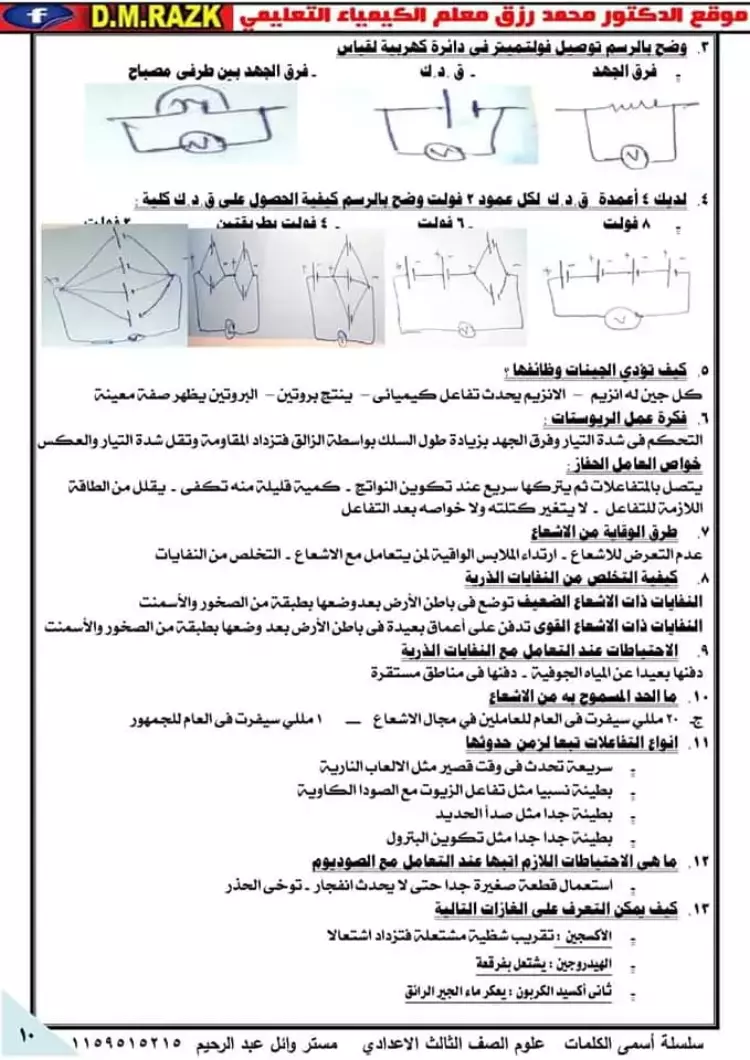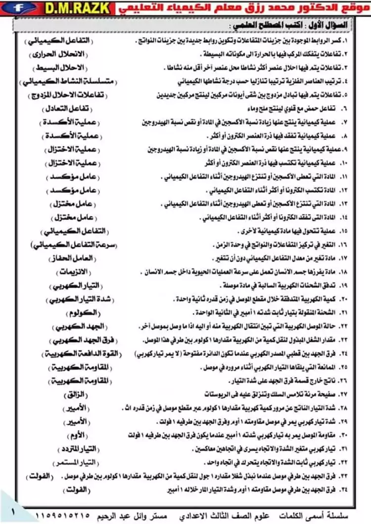 وجاء في ملزمة مراجعة علوم للصف الثالث الإعدادي الترم الثاني، والتي نستعرضها لكم في نهاية هذ التقرير ما يلي: