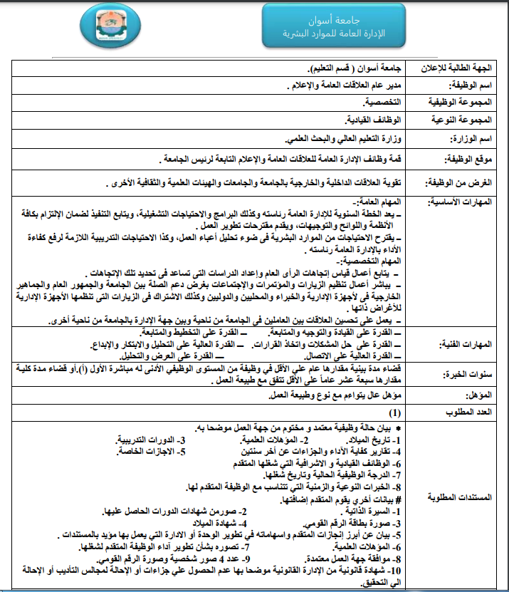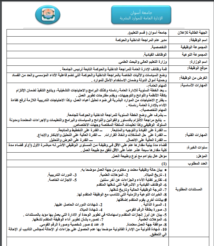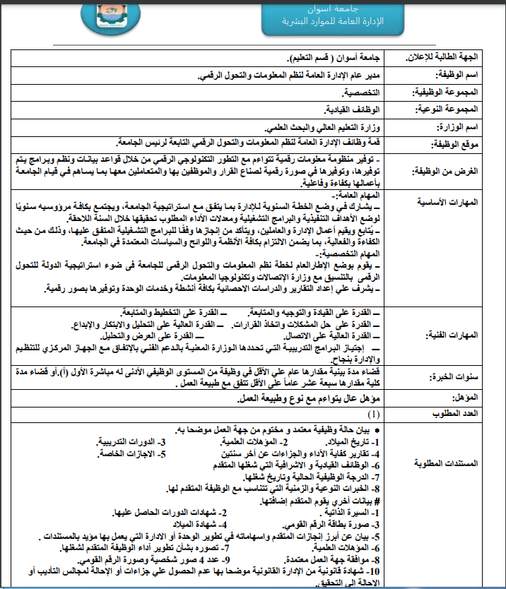عاجل.. جامعة أسوان تعلن عن 3 وظائف قيادية شاغرة