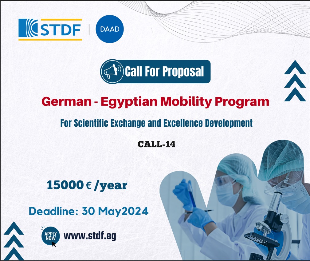 أعلنت هيئة تمويل العلوم والتكنولوجيا والابتكار (STDF) بالتعاون مع مؤسسة التبادل الأكاديمي الألمانية (DAAD)عن فتح باب التقدم لمنحة "سفر شباب الباحثين ضمن مشروع بحثي" (GE-SEED)، بتمويل يصل الى ١٥ ألف يورو في السنة، للباحثين من الجامعات والمراكز البحثية المصرية.