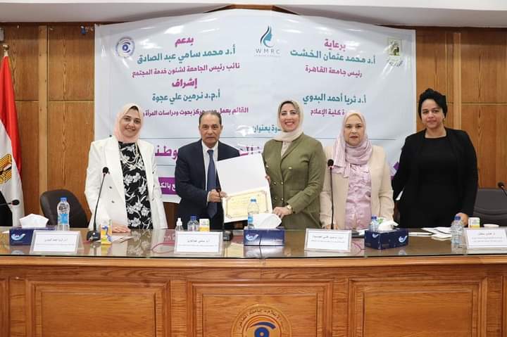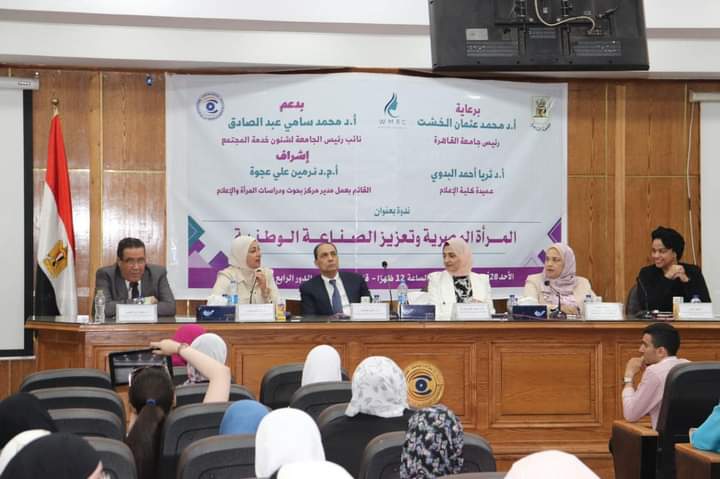 أقام مركز بحوث ودراسات المرأة والإعلام التابع لكلية الإعلام جامعة القاهرة، ندوة تحت عنوان "المرأة وتعزيز الصناعة الوطنية"، وذلك تحت رعاية الدكتور محمد عثمان الخشت رئيس جامعة القاهرة والدكتورة ثريا أحمد البدوي عميد كلية الإعلام جامعة القاهرة، وبدعم من الدكتور محمد سامي عبد الصادق نائب رئيس الجامعة لشئون خدمة المجتمع وإشراف الدكتورة نرمين علي عجوة مدير مركز بحوث ودراسات المرأة والإعلام التابع لكلية الاعلام جامعة القاهرة.