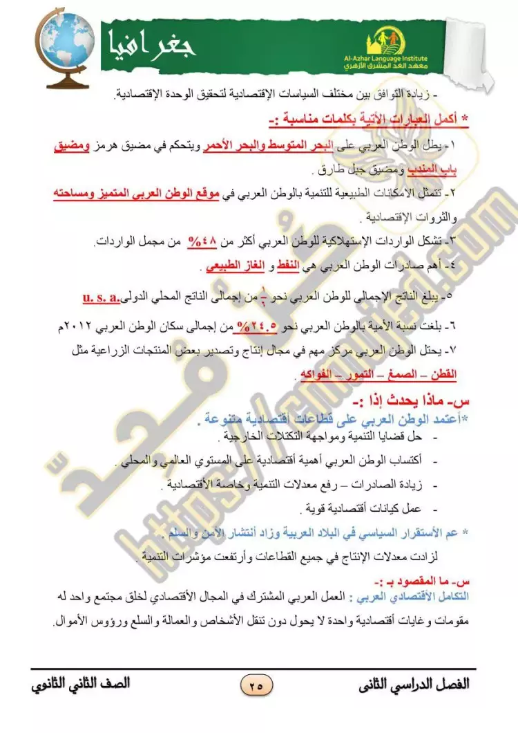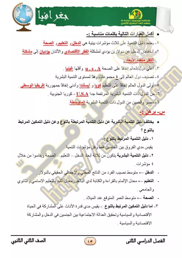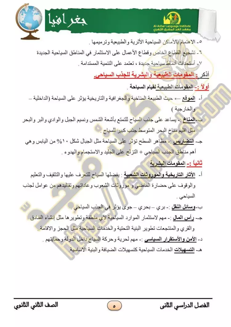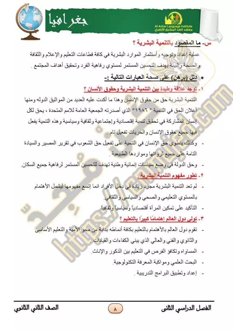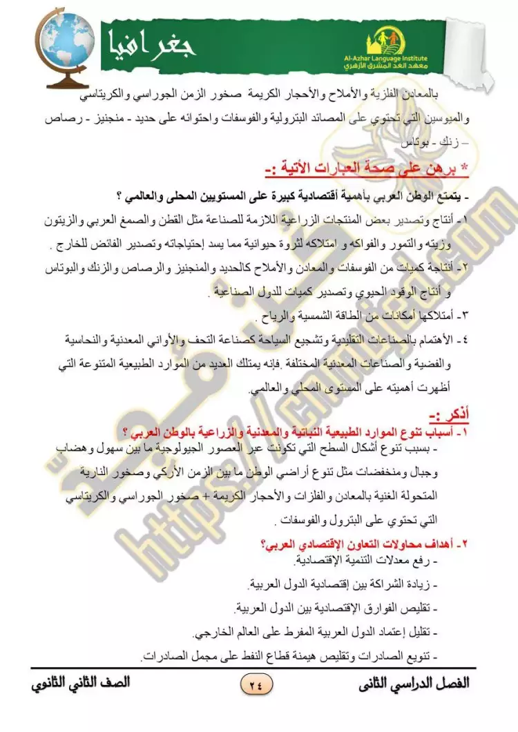 متاح.. مراجعة ليلة الامتحان جغرافيا للصف الثاني الثانوي الترم الثاني 2024