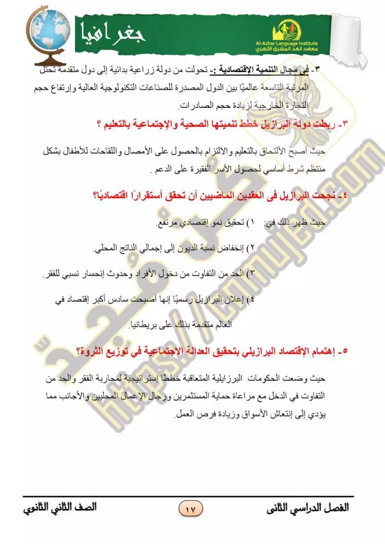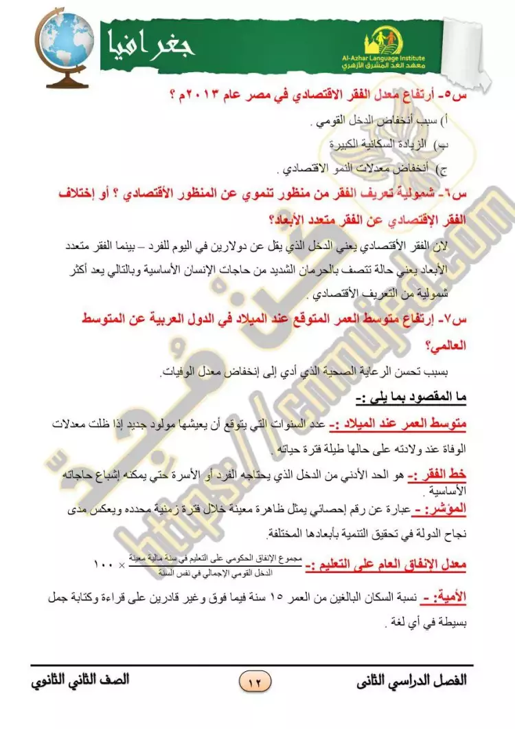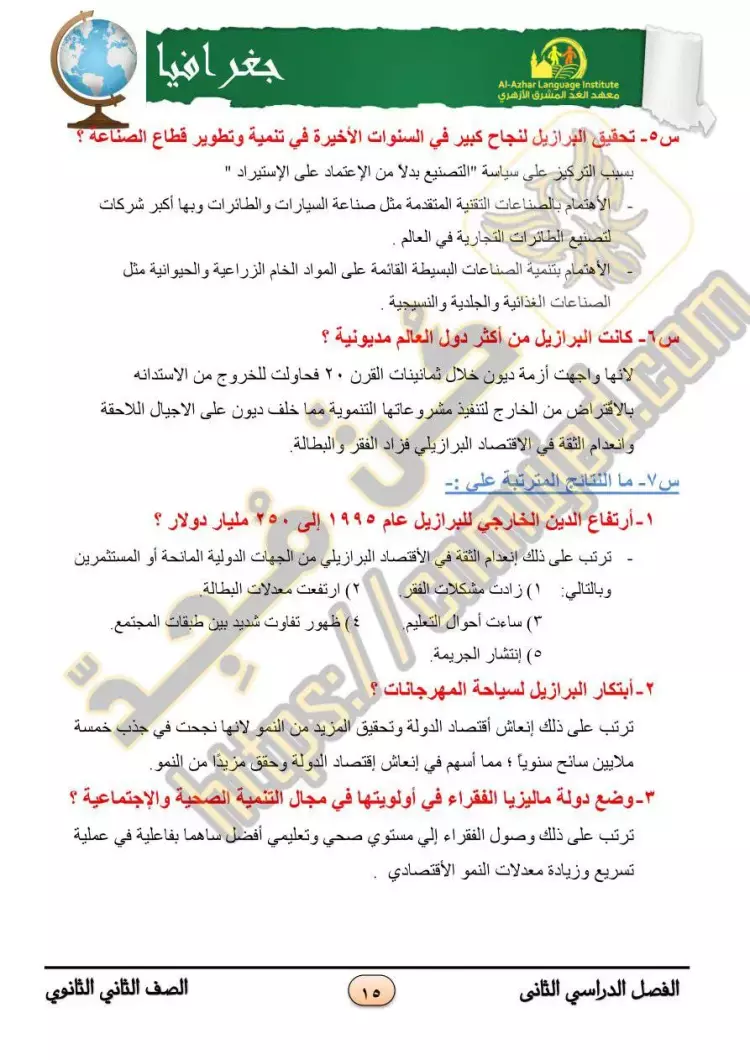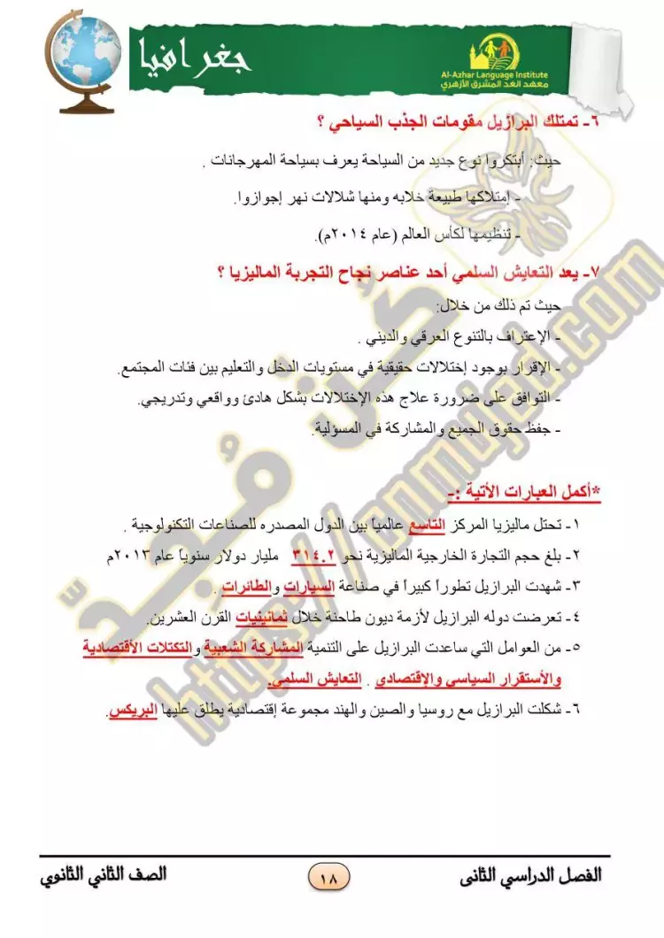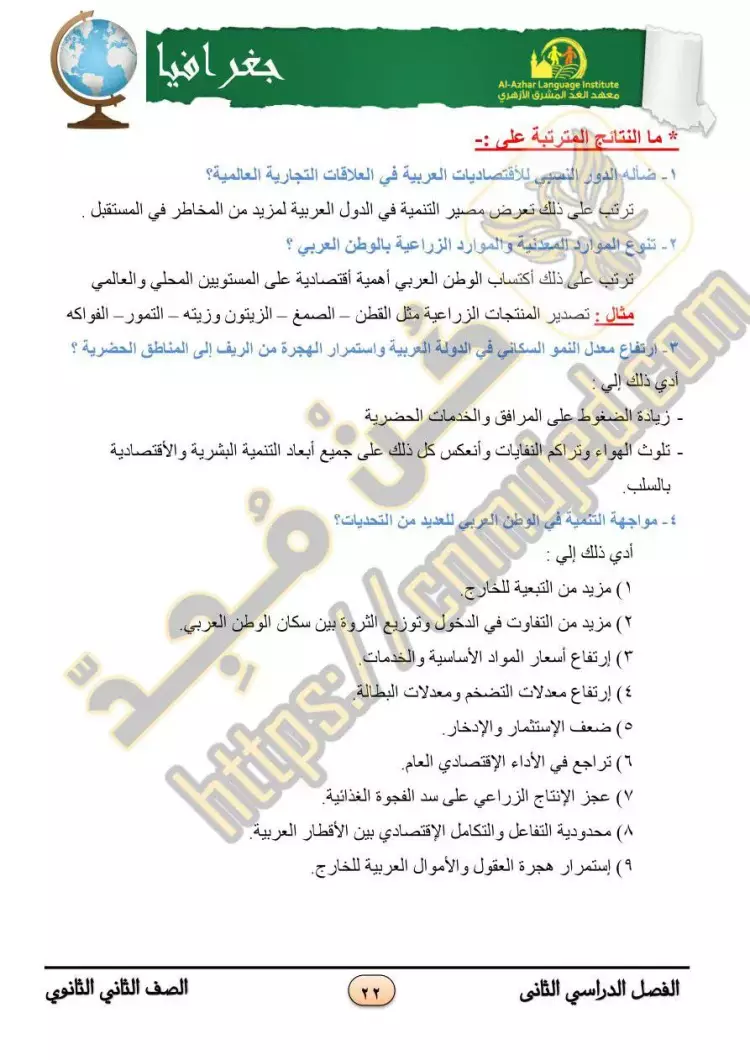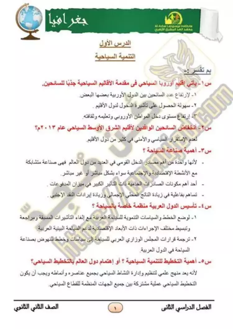 وقد احتوت مراجعة جغرافيا تانية ثانوي الترم الثاني، على المنهج كاملا في صورة أسئلة عديدة مجاب عليها، كما يلي: