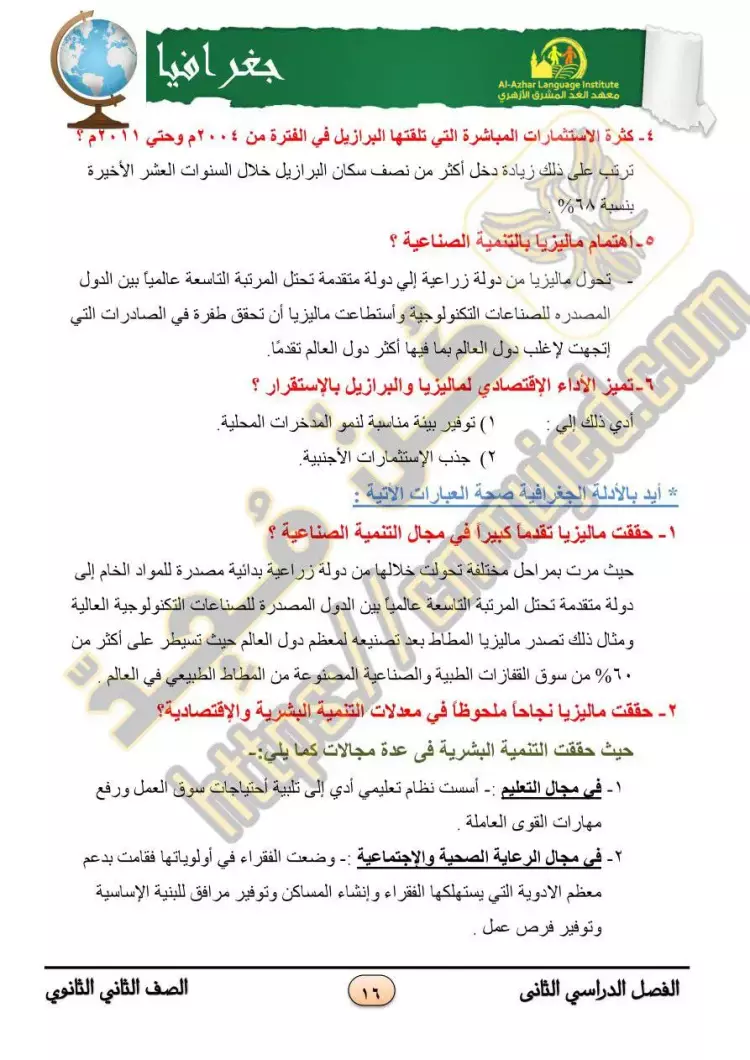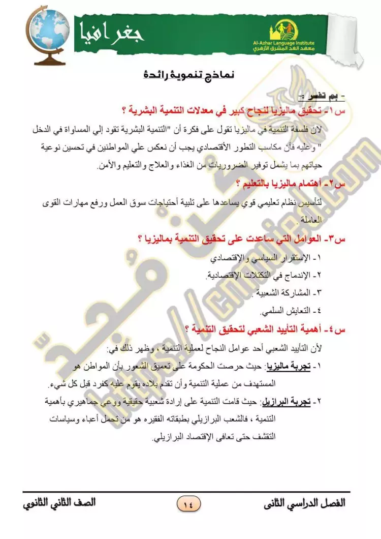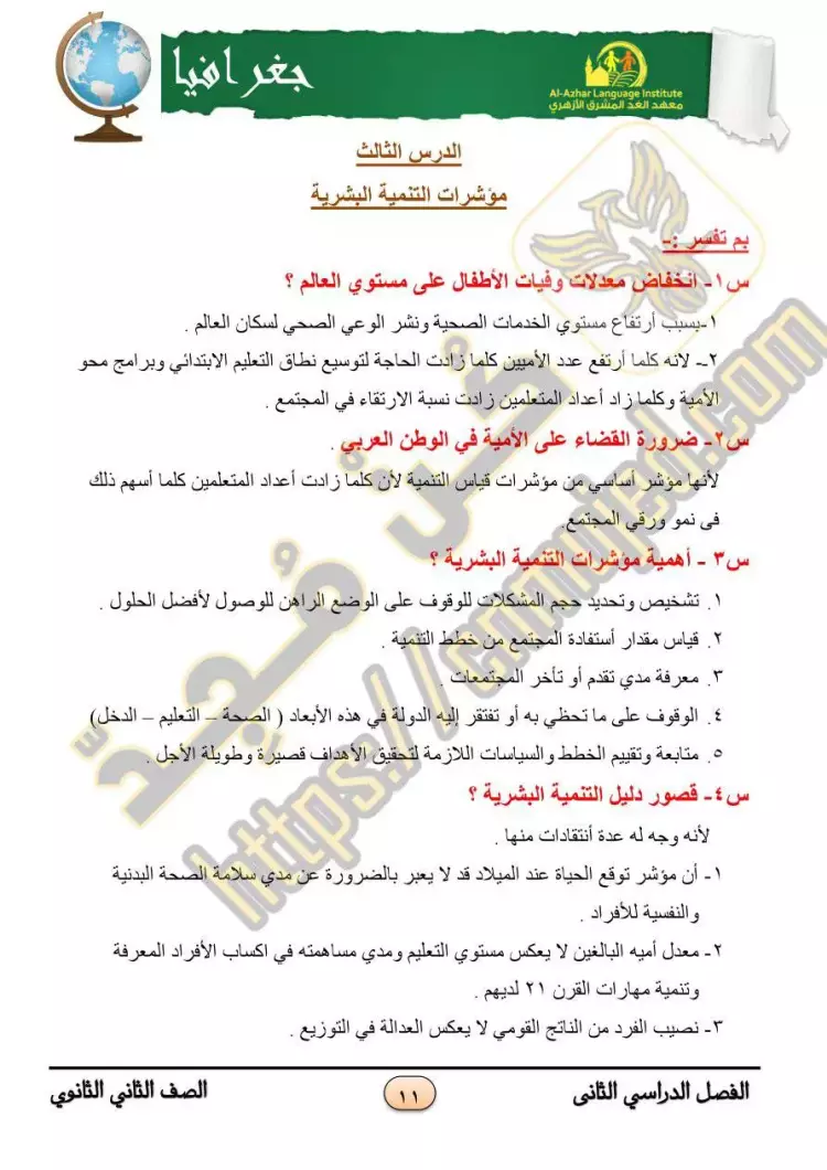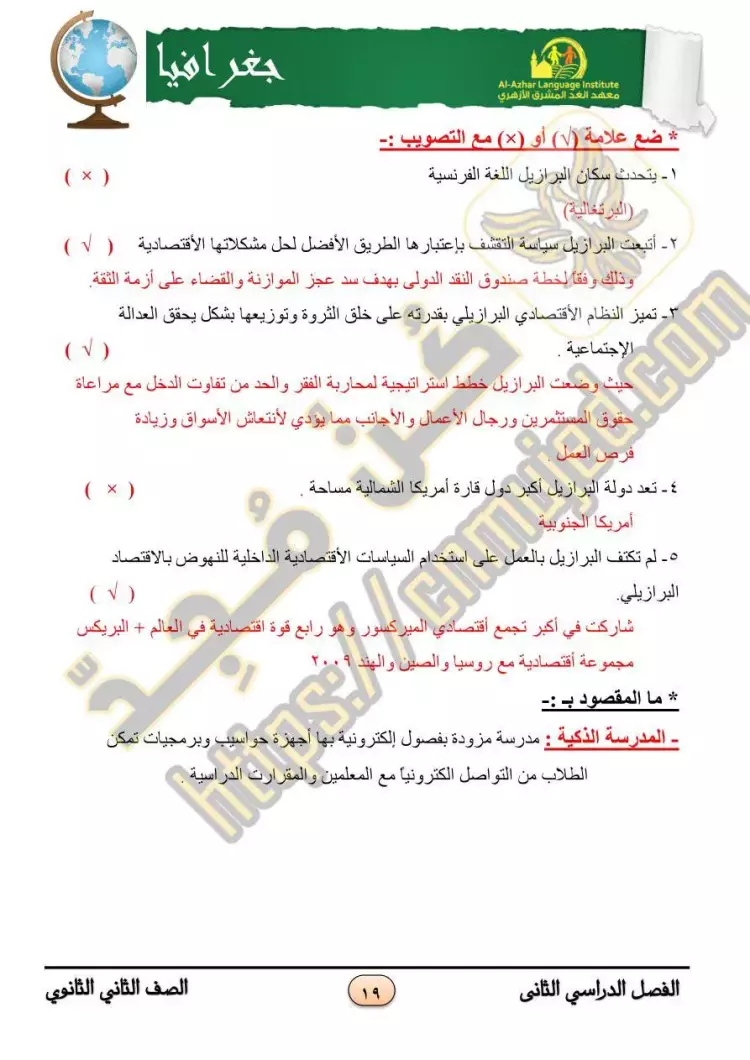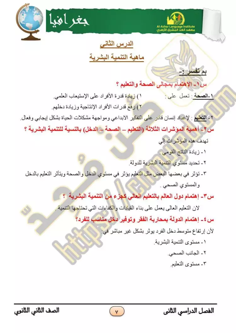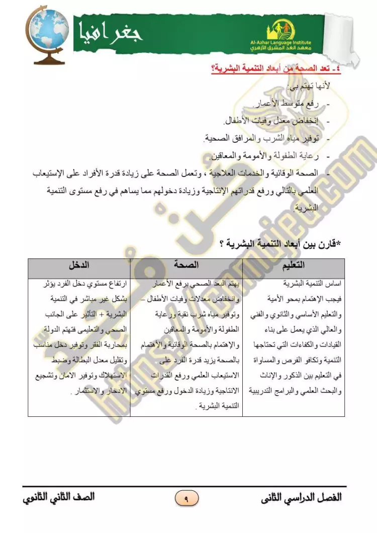 وقد احتوت مراجعة جغرافيا تانية ثانوي الترم الثاني، على المنهج كاملا في صورة أسئلة عديدة مجاب عليها، كما يلي: