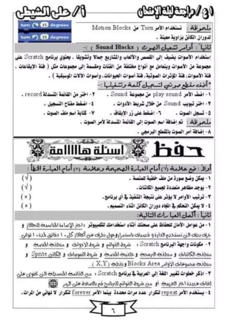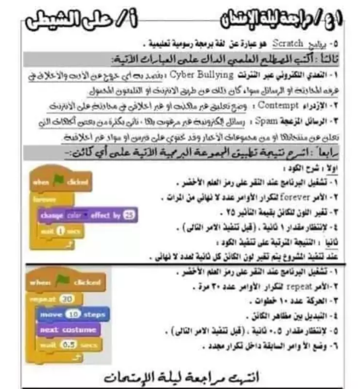 وتتمتع مراجعة ليلة الامتحان بشرح مبسط لمقرر الكمبيوتر، ومن بين العناصر الموجودة بالمذكرة: