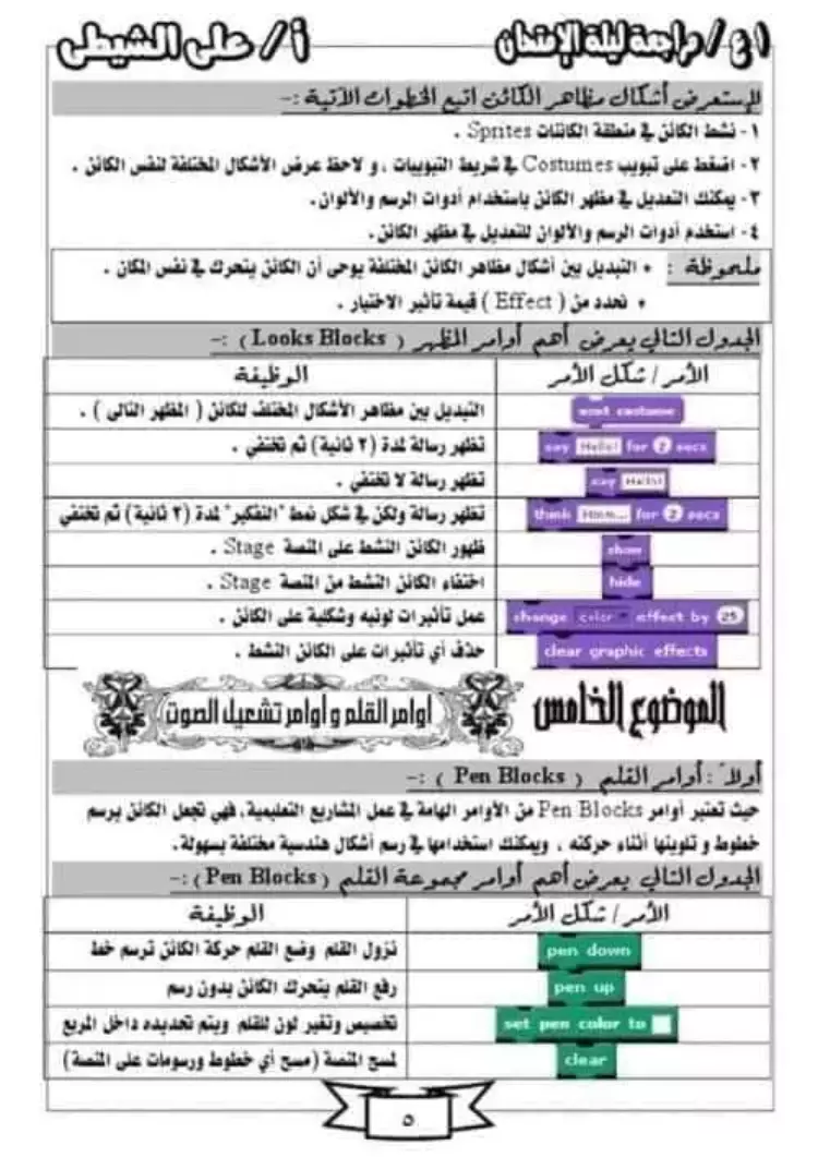 الموضوع الخامس: أوامر القلم وأوامر تشغيل الصوت