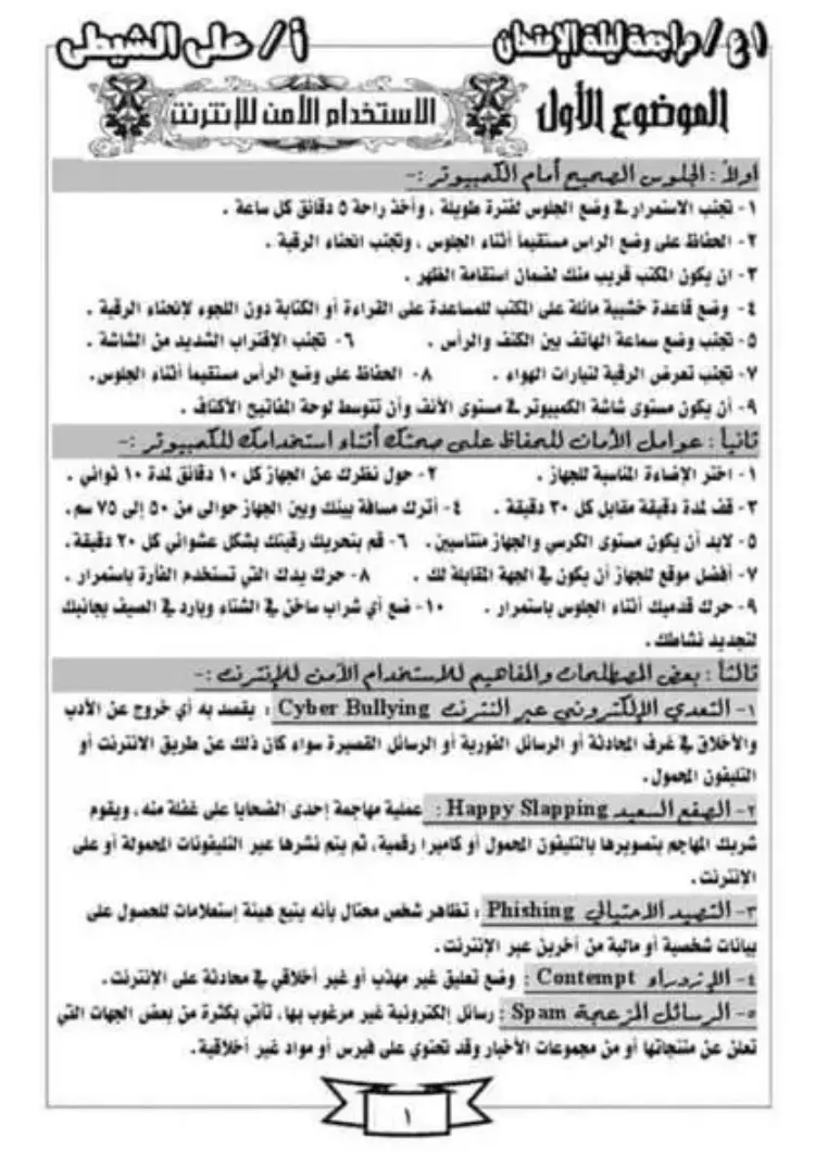 الموضوع الأول: الاستخدام الآمن للإنترنت