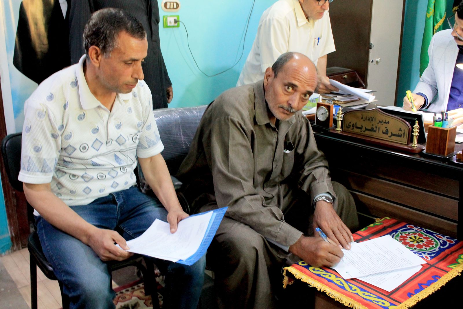 وذلك فى حضور المهندس السيد عصام المتولي ومعتز أحمد المتولي أبناء المتبرعين بقطعة الأرض ومحب أبو زيد رئيس قسم التخطيط والمتابعة بالإدارة وأسامه حسن رئيس قسم التوجيه المالي والإداري بالإدارة ومحمد عبد الغني شادي مدير العلاقات العامة ومندور المتولي السيد مدير التعليم الفني بالإدارة وأيمن شادي رئيس قسم التطوير.