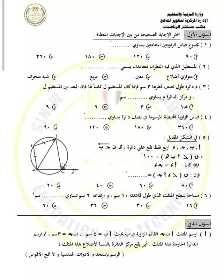ننشر لكم نماذج امتحانات وزارة التربية والتعليم في مقرر الهندسة ضمن مادة الرياضيات للصف الثالث الإعدادي الفصل الدراسي الثاني.