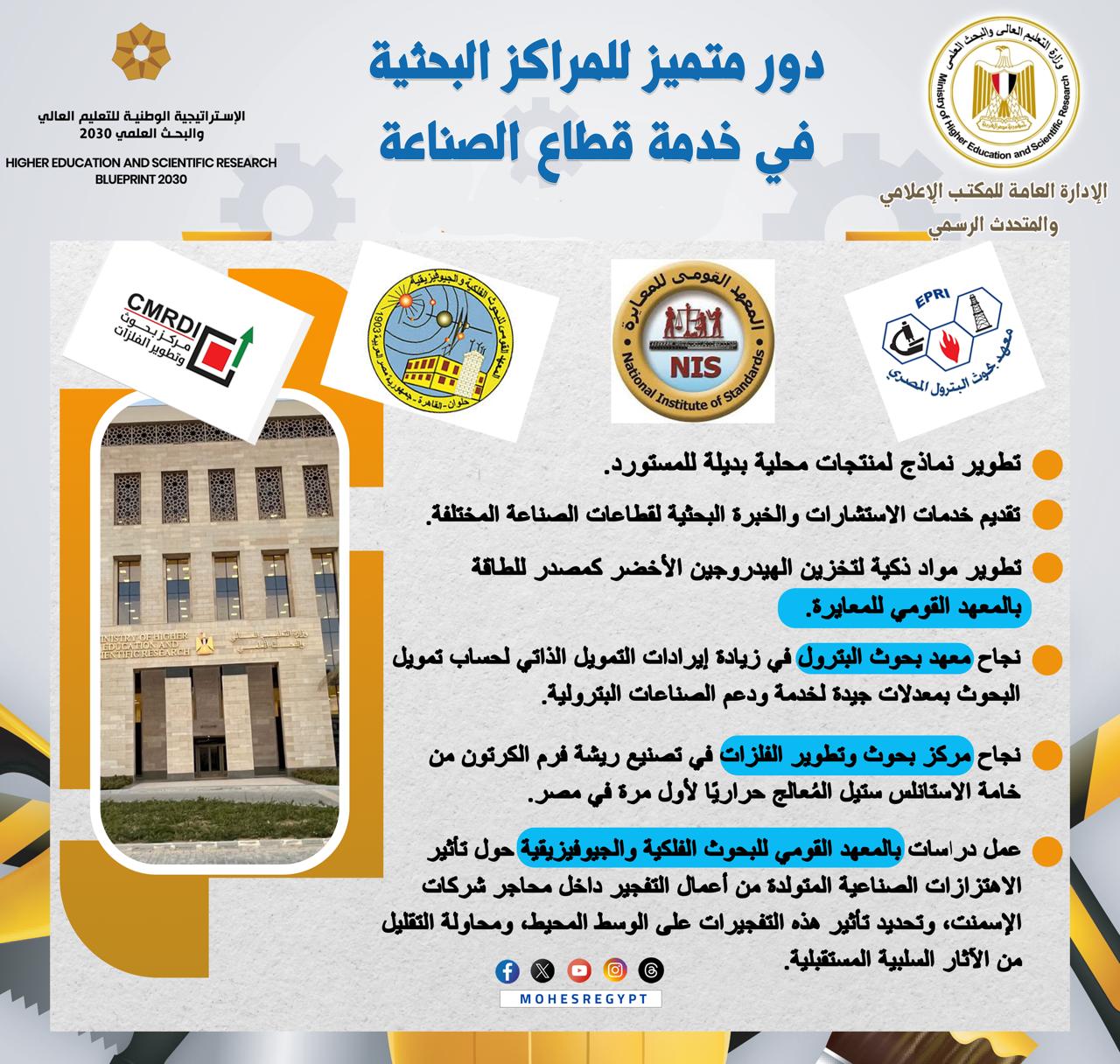 التعليم العالي: دور متميز للمراكز البحثية في خدمة قطاع الصناعة
