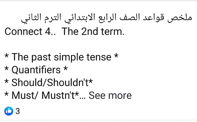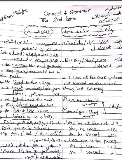 كما نقدم أيضا ملزمة من ورقتين تلخص جميع قواعد الجرامر لمنهج كونيكت 4أو connect 4.