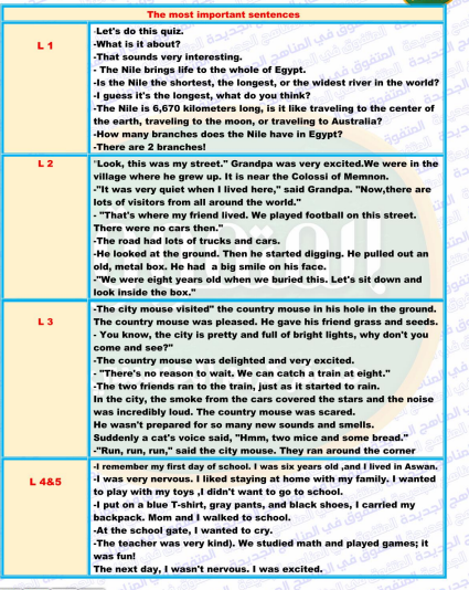 ملخص مادة اللغة الإنجليزية للصف الرابع الابتدائي الترم الثاني 2024