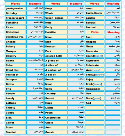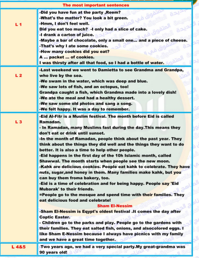 - مراجعة انجليزي للصف الرابع الابتدائي الترم الثاني