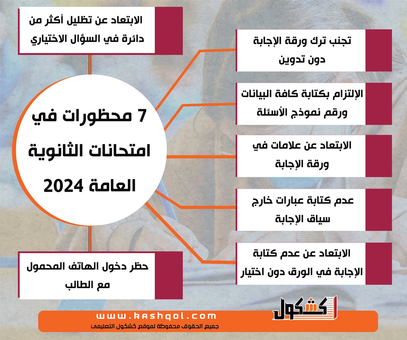 انفوجراف.. 7 محظورات في امتحانات الثانوية العامة 2024