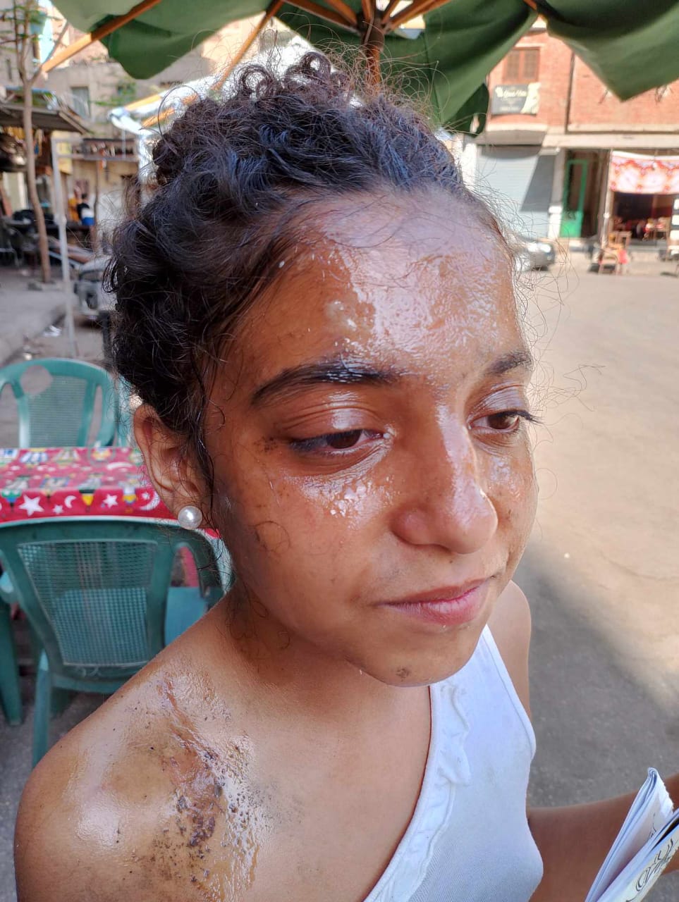 وتابعت: حدث لابنتى تشوهات فى الوجه والرأس وحروق من الدرجة الثانية وقد قمت بعمل محضر فى قسم شرطة العمرانية.