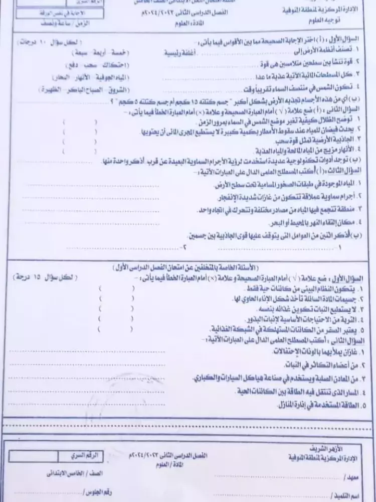 وفي هذا السياق، يمكن الاطلاع على نماذج امتحانات الصف الخامس الابتدائي الترم الثاني كل المواد، وذلك من خلال الصور التالية: