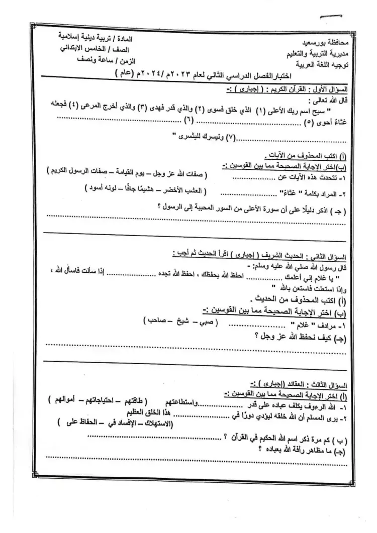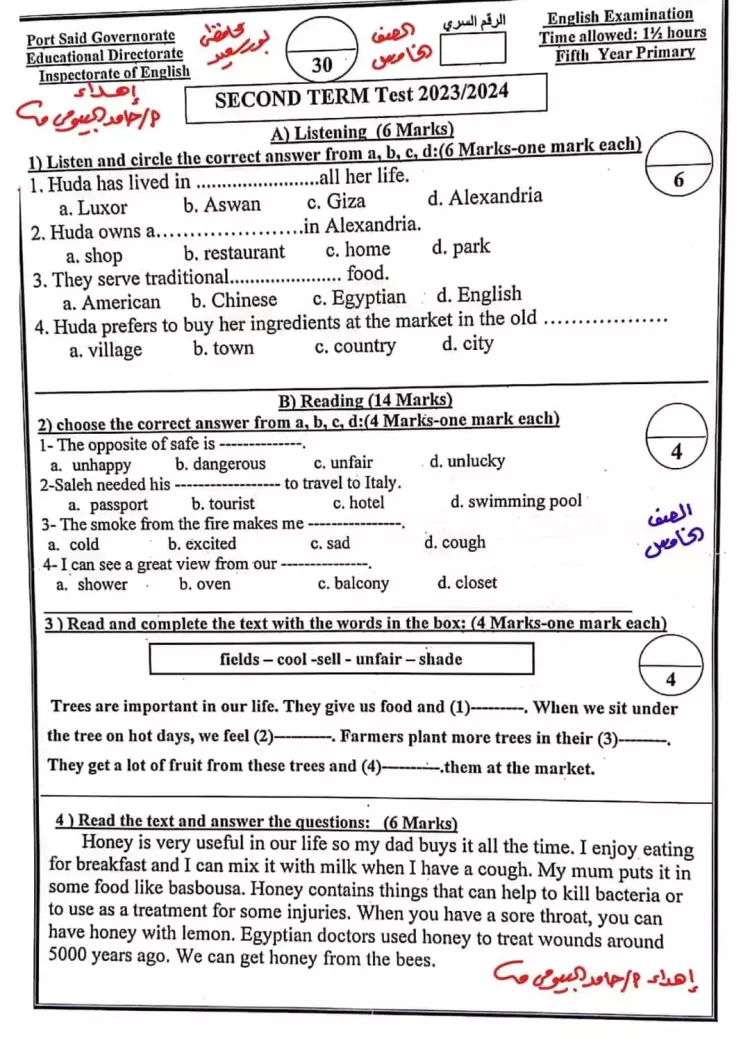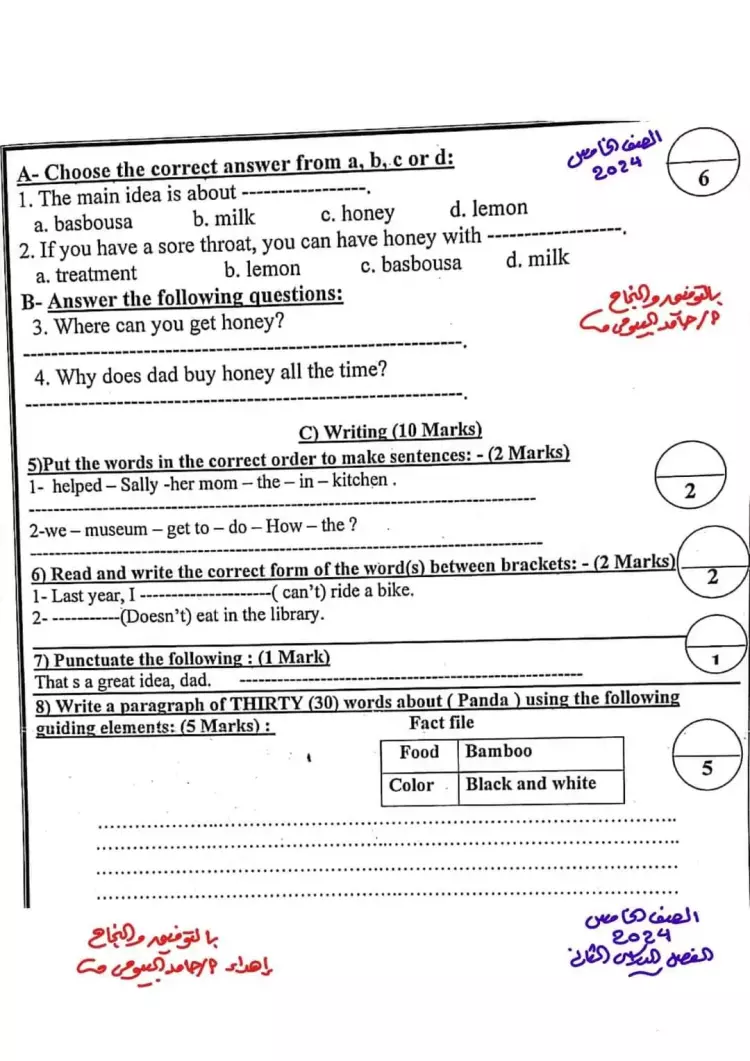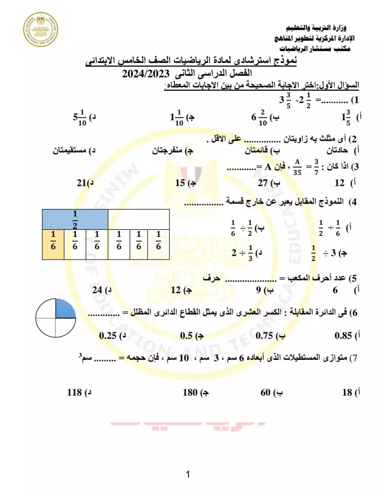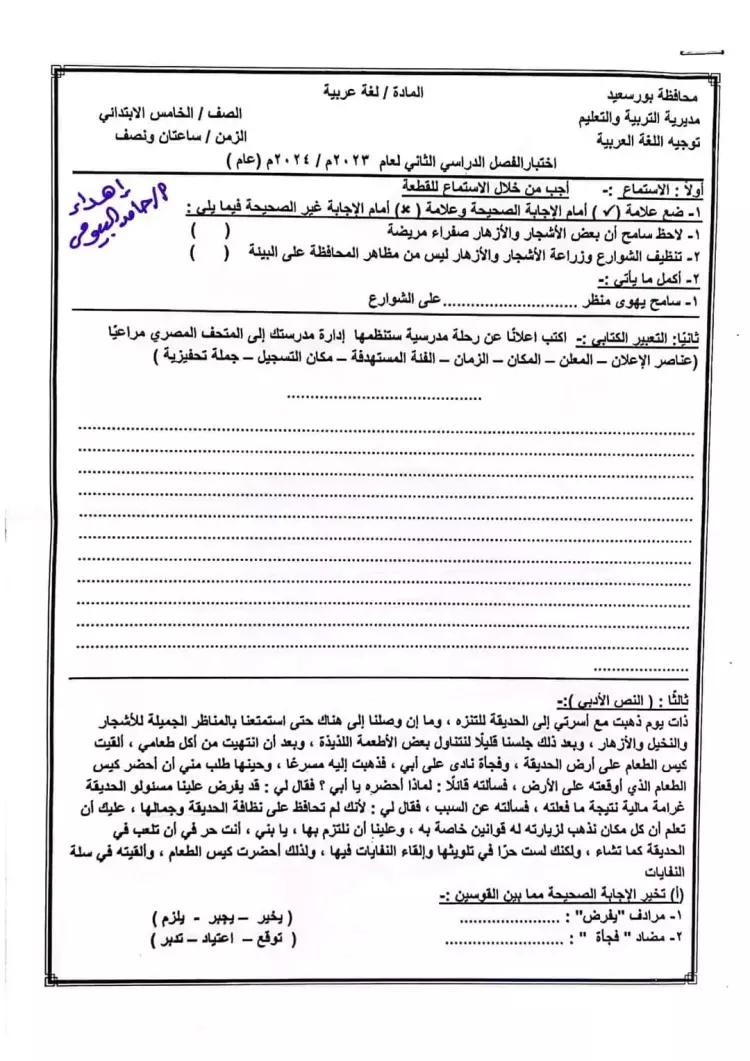 نماذج امتحانات الصف الخامس الابتدائي الترم الثاني 2024 كل المواد