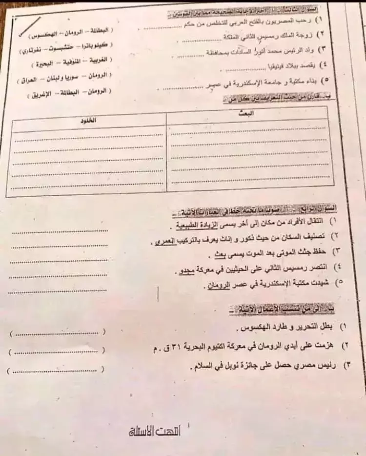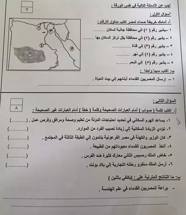 ومن بين الأسئلة التي تضمنتها النماذج التي نستعرضها لكم في نهاية هذا الموضوع ما يلي: