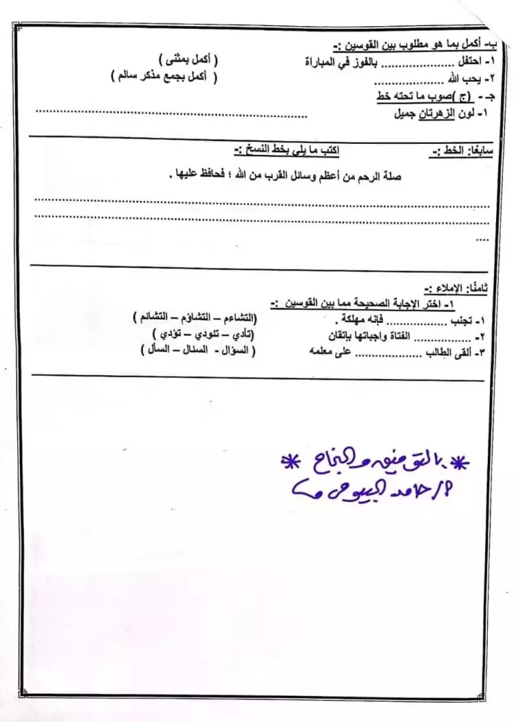 تخير الإجابة الصحيحة مما بين القوسينئ: