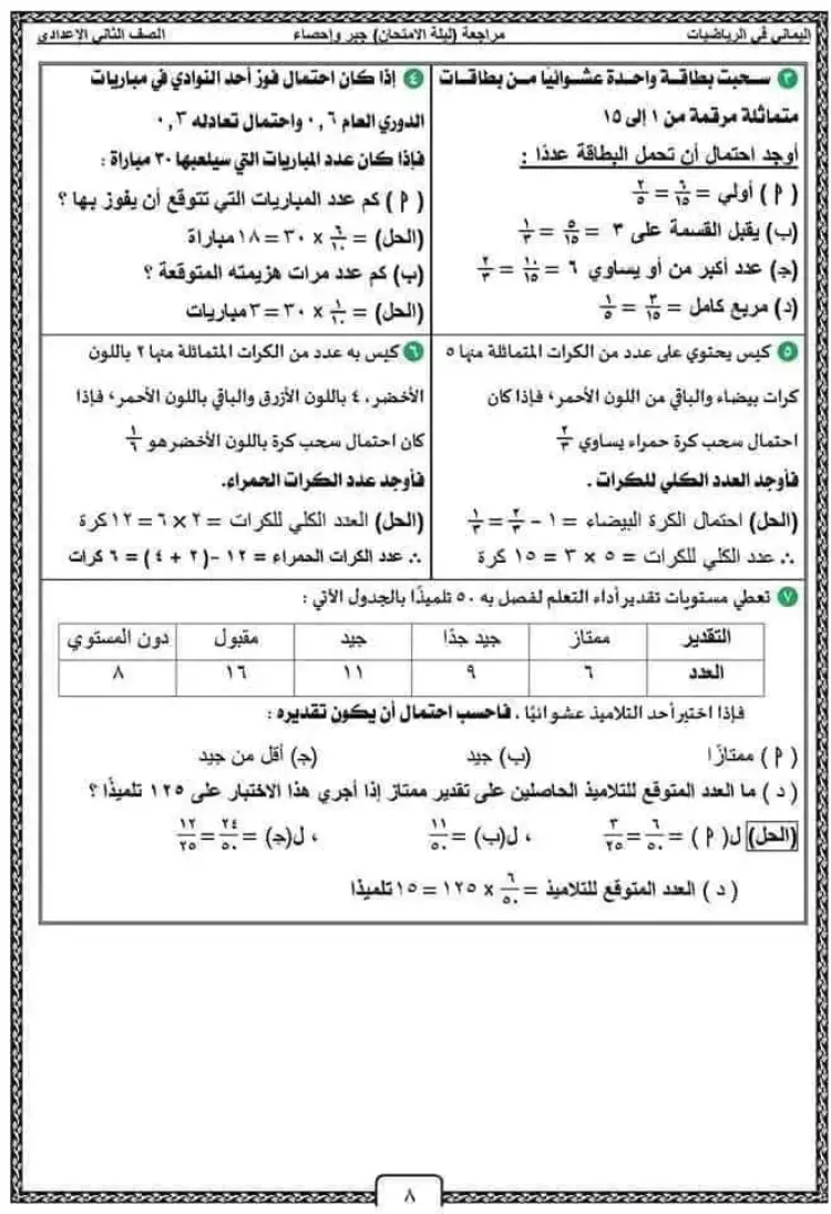 وفي هذا السياق، يمكن الاطلاع وتحميل مراجعة جبر وإحصاء للصف الثاني الإعدادي الترم الثاني 2024، وذلك من خلال الصور التالية:
