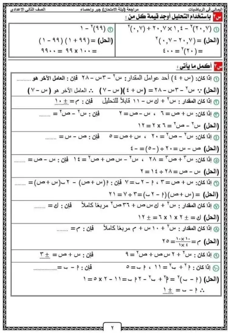 "متوفر".. مراجعة جبر وإحصاء للصف الثاني الإعدادي الترم الثاني 2024