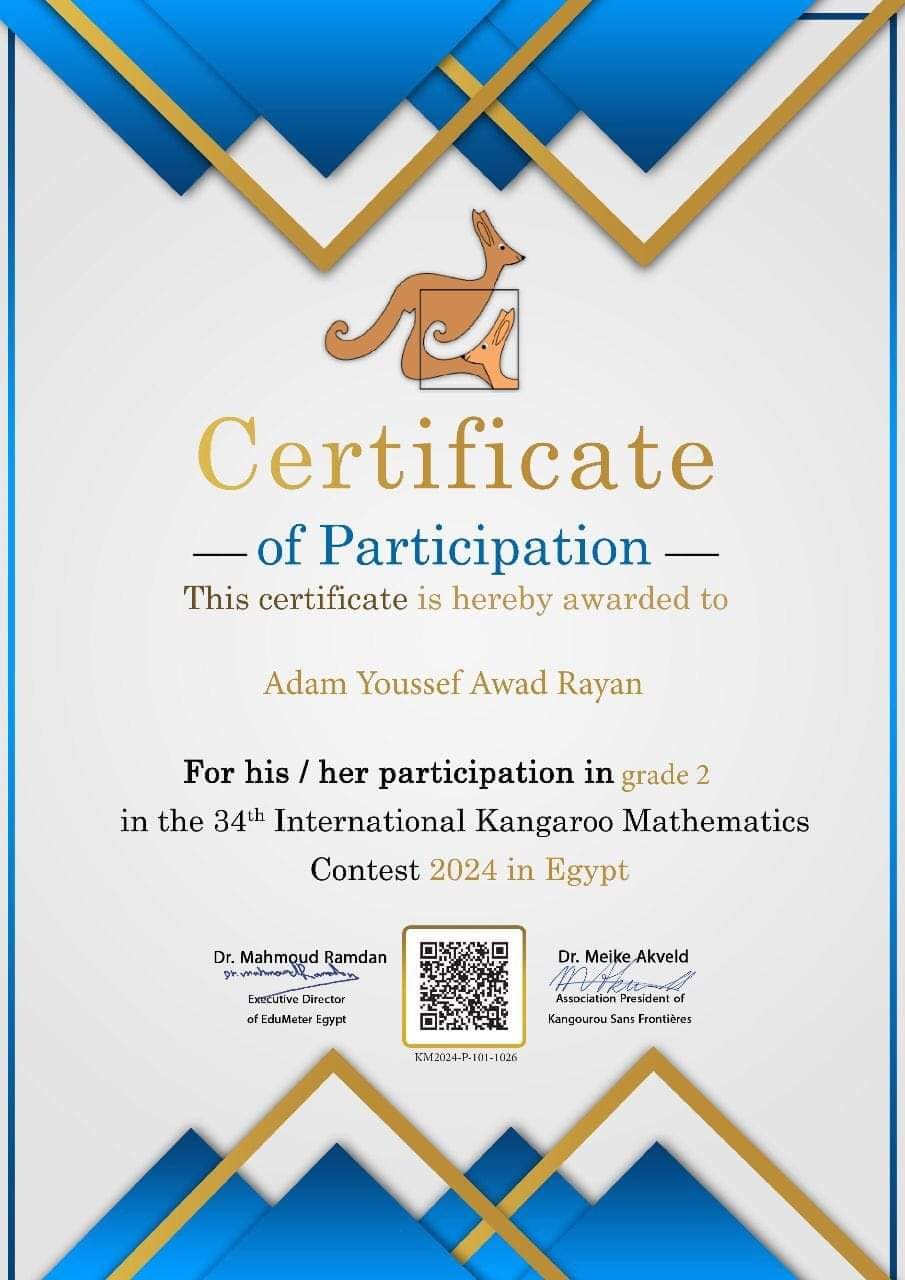 احتفت مديرية التربية والتعليم والتعليم الفني بمحافظة الدقهلية، بطالب الصف الثاني الابتدائي بمدرسة عبدالفتاح السيسي الرسمية لغات، آدم يوسف عوض بعد فوزه بمسابقة كانجارو الدولية.