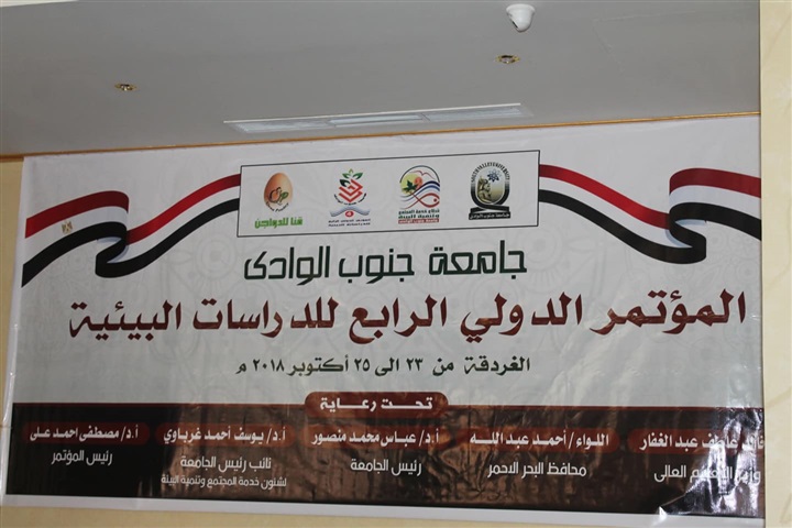 نظمت جامعة جنوب الوادي ممثلة بقطاع خدمة المجتمع وتنمية البيئة مؤتمرها الدولي الرابع للدراسات البيئية والذى عقد في رحاب مدينة الغردقة في الفترة من 23 إلى 25 أكتوبر تحت رعاية الدكتور ياسمين فؤاد وزيرة البيئة واللواء اركان حرب أحمد عبد الله محافظ البحر الأحمر والدكتور عباس منصور رئيس جامعة جنوب الوادي.