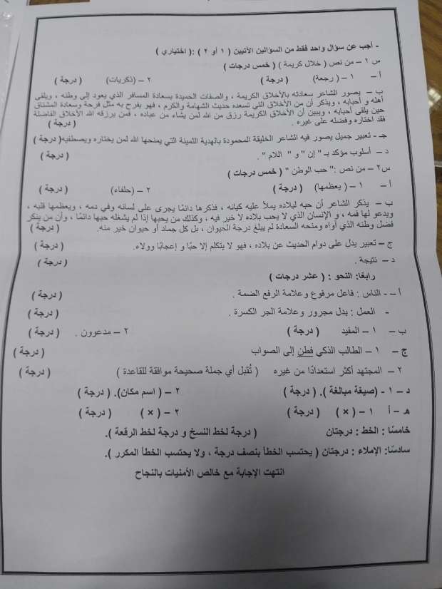 ننشر نموذج إجابة امتحان اللغة العربية للشهادة الإعدادية 2024 بالقاهرة