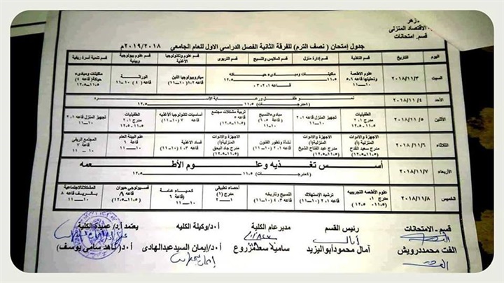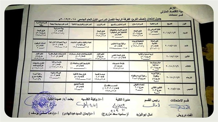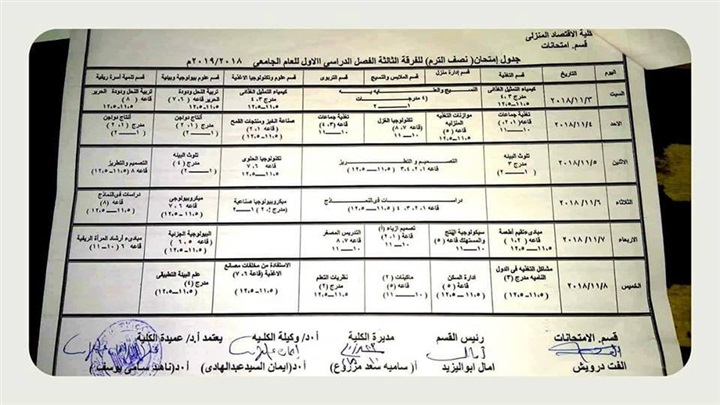 ننشر جداول امتحانات الـ"ميد ترم" لطلاب الاقتصاد المنزلى بطنطا