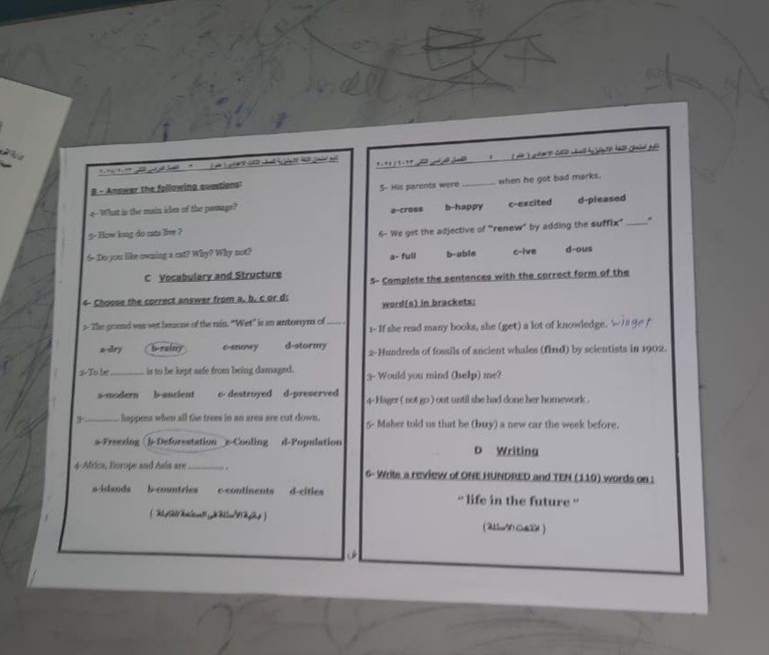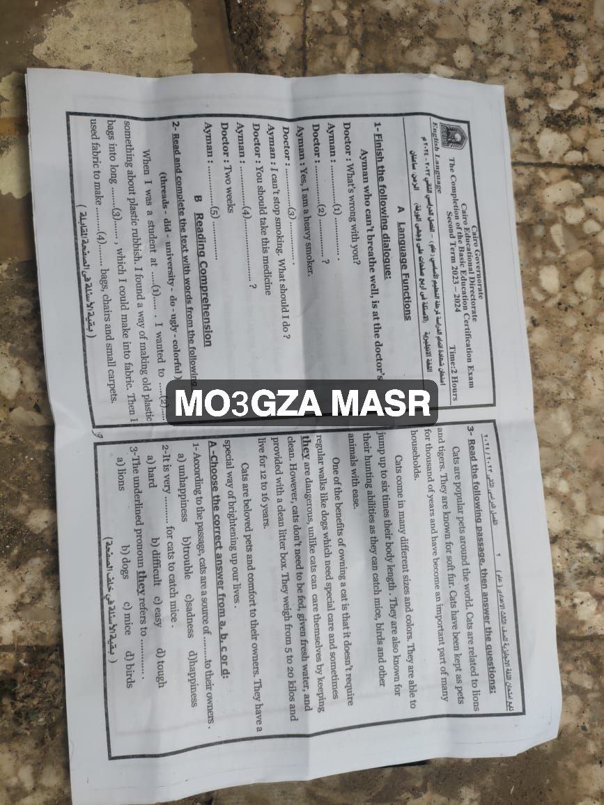 - نشر امتحان الإنجليزي لإعدادية القاهرة بالإجابات