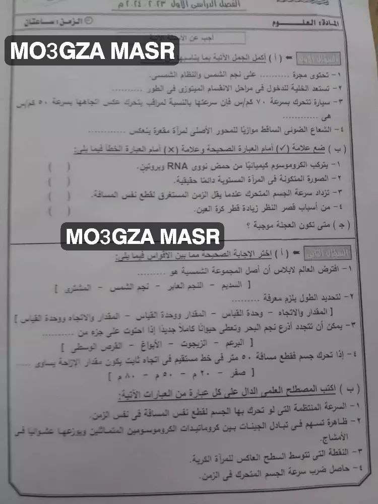 تداول امتحان العلوم للشهادة الإعدادية الترم الثاني بالبحيرة