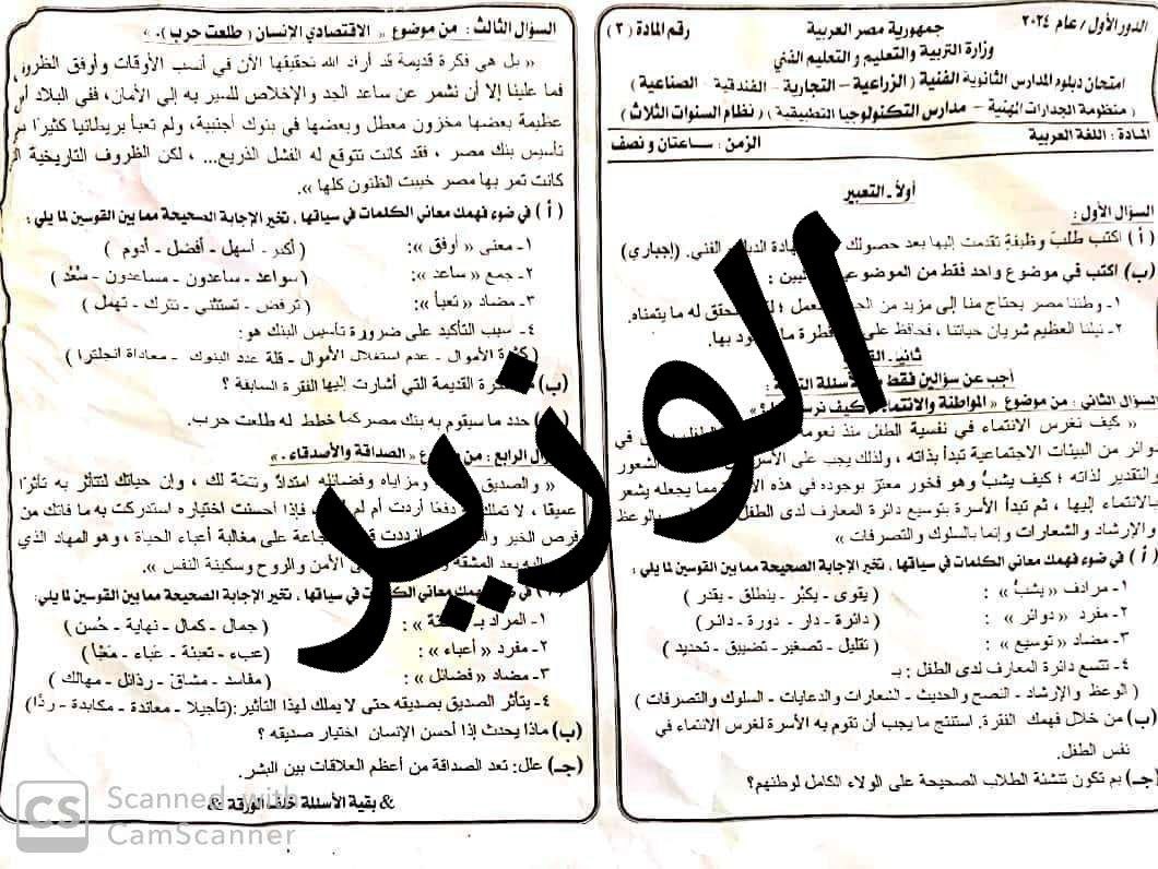 تداولت مجموعات الغش على تطبيق التواصل الاجتماعي تليجرام، صور لامتحان مادة اللغة العربية لطلاب الدبلومات الفنية الزراعية، التجارية، الفندقية، الصناعية، منظومة الجدارات المهنية، مدارس التكنولوجيا التطبيقية نظام الثلاث سنوات الدور الأول للعام الدراسي 2023/2024.