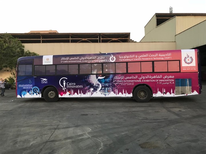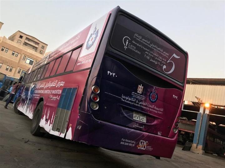 أطلقت أكاديمية البحث العلمي والتكنولوجيا حملة إعلانية لمعرض القاهرة الدولي الخامس للابتكار 2018 علي أتوبيسات هيئة النقل العام بالقاهرة، تجوب 69 منطقة في شوارع القاهرة الكبرى من خلال 3 خطوط.