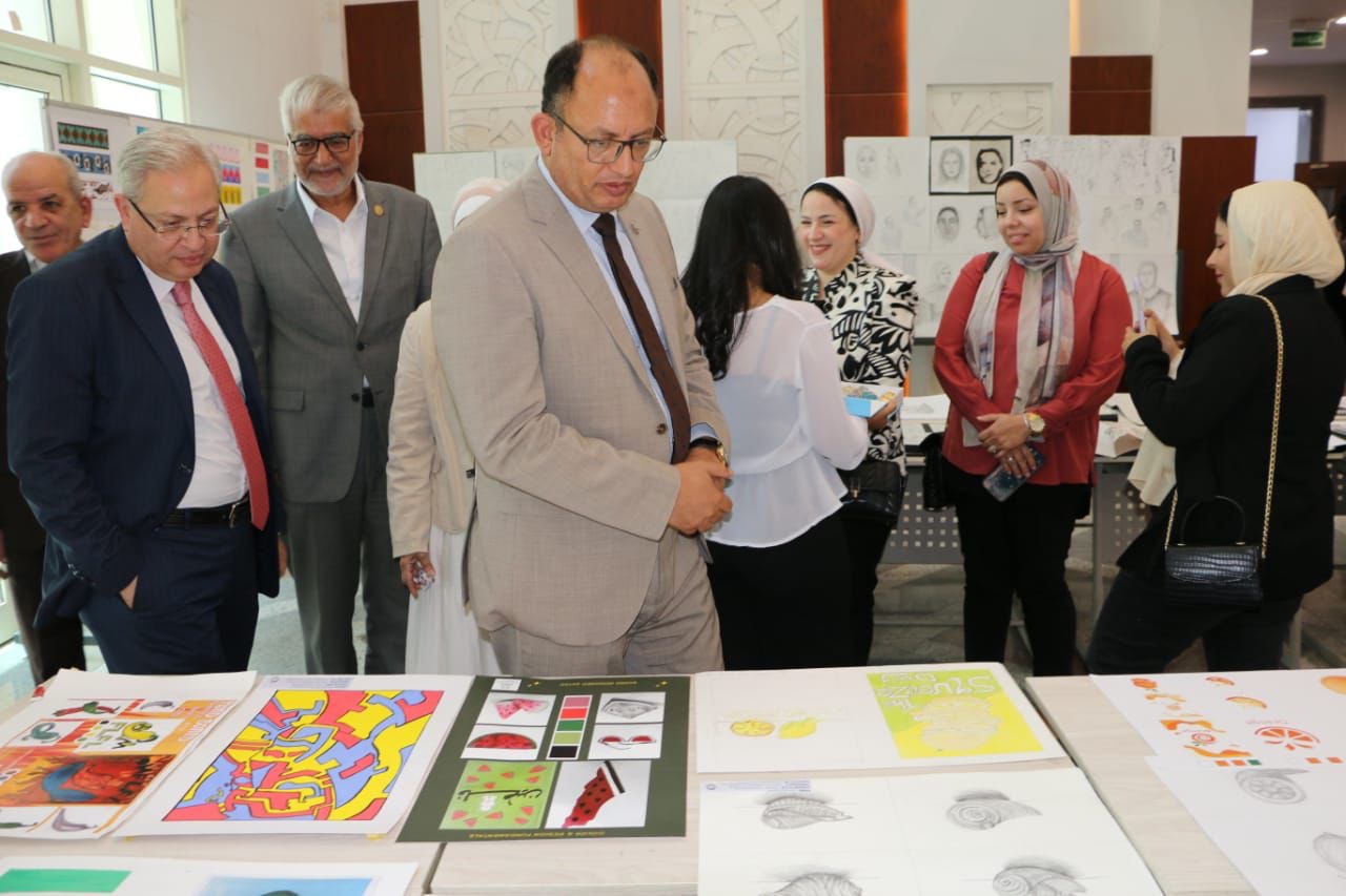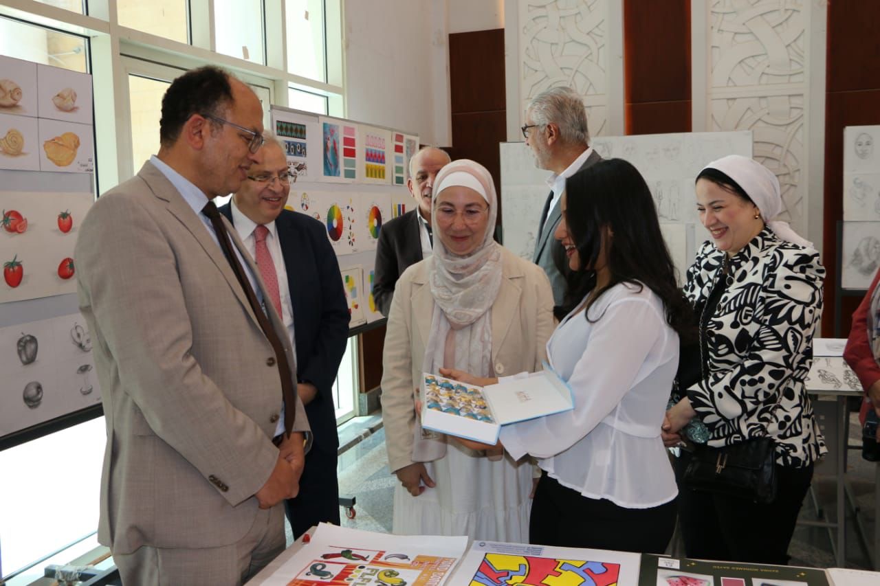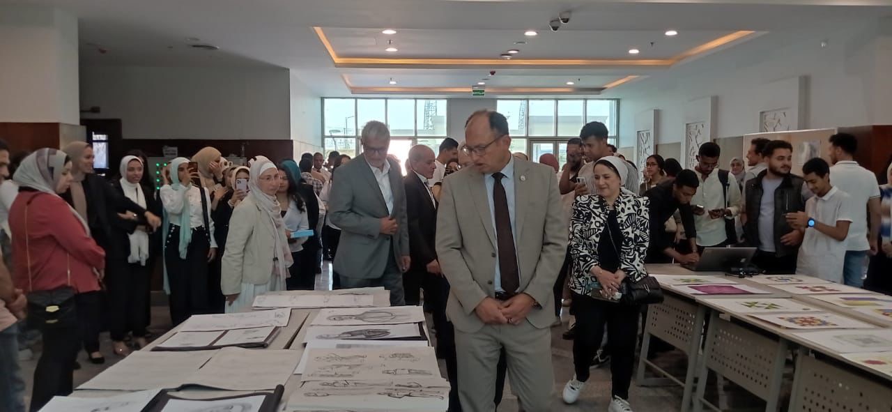 وخلال فعاليات المعرض شهد الدكتور السيد قنديل رئيس جامعة حلوان الأهلية، عرضا خاصا لبعض أعمال الطلاب المرئية والمؤثرات البصرية بقاعة المجسمات بالحرم الجامعي، موجها كلمة للطلاب تشيد بمجهوداتهم وأعمالهم المتميزة، وقدم لهم بعض النصائح الهامة لدعم وصقل مواهبهم، وأشار إلى أن المداومة على العمل من أهم أسباب النجاح.
